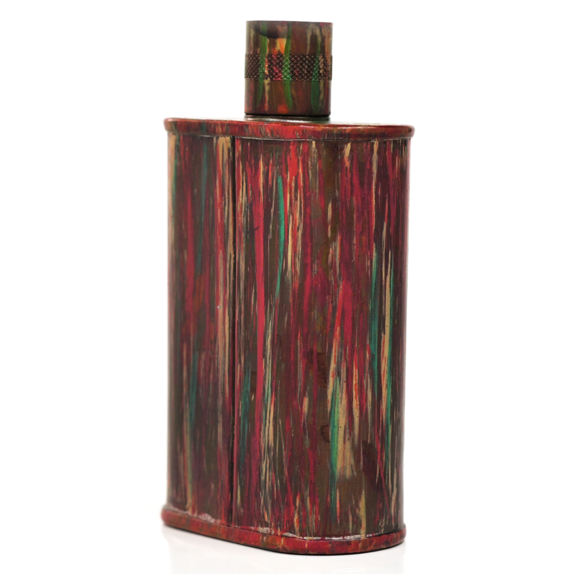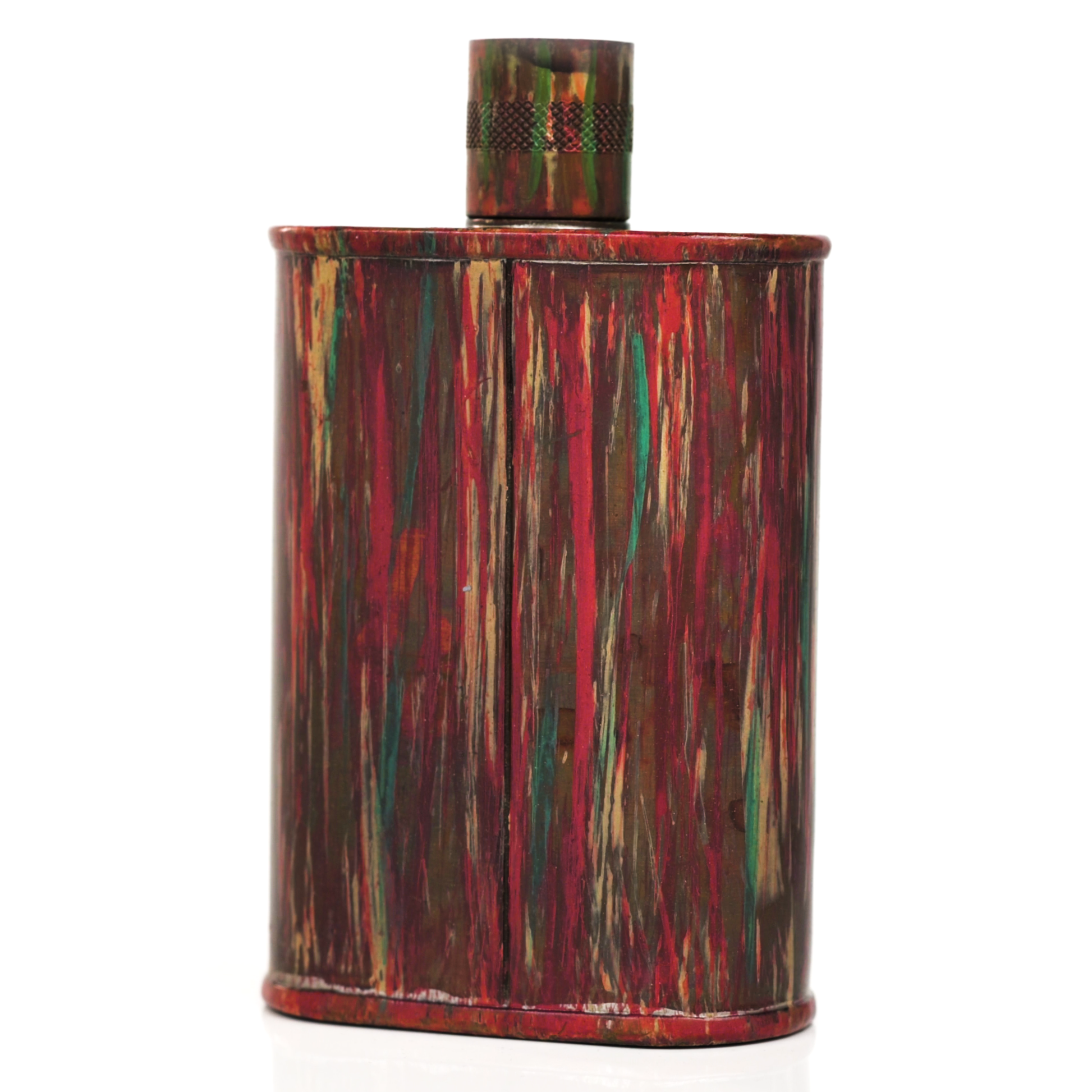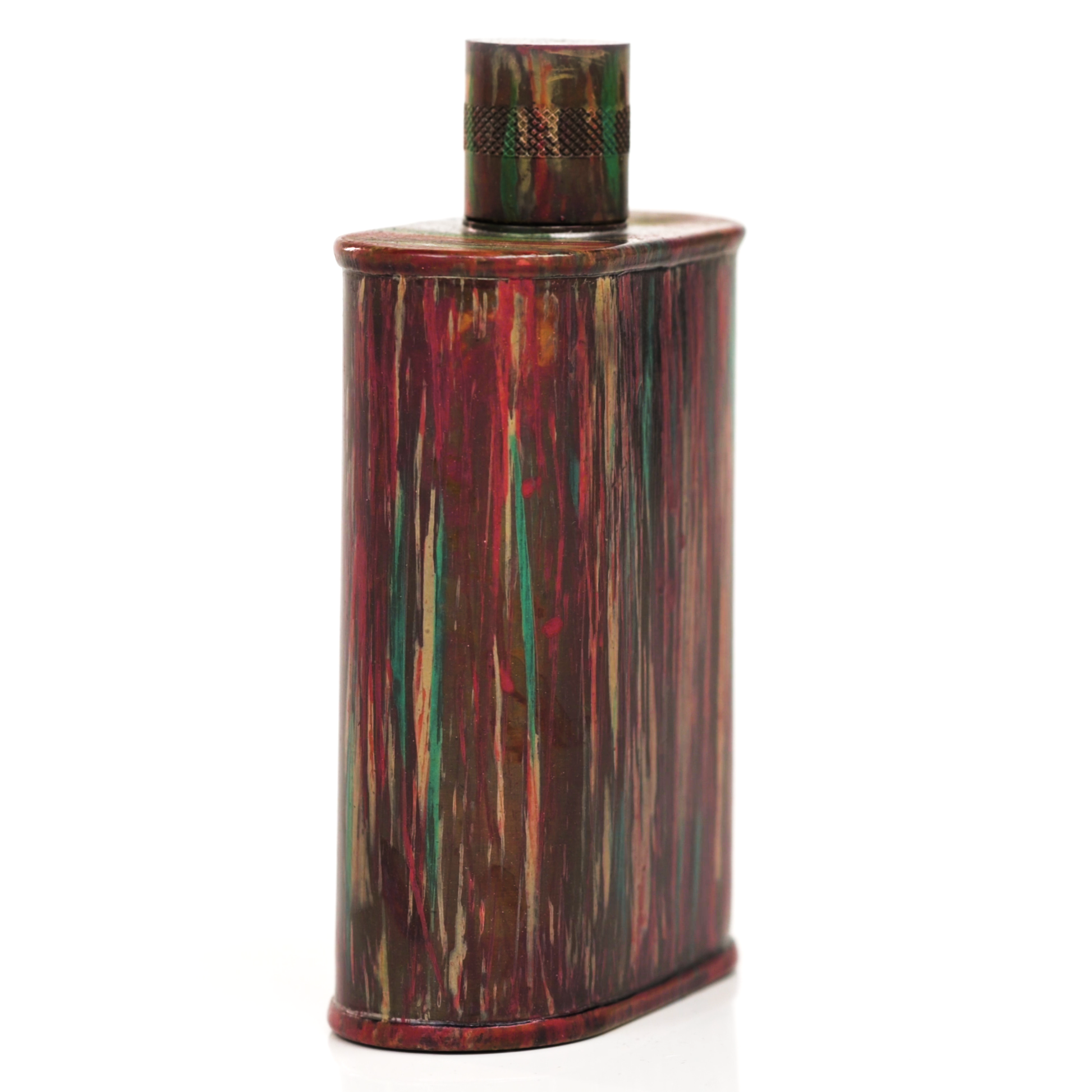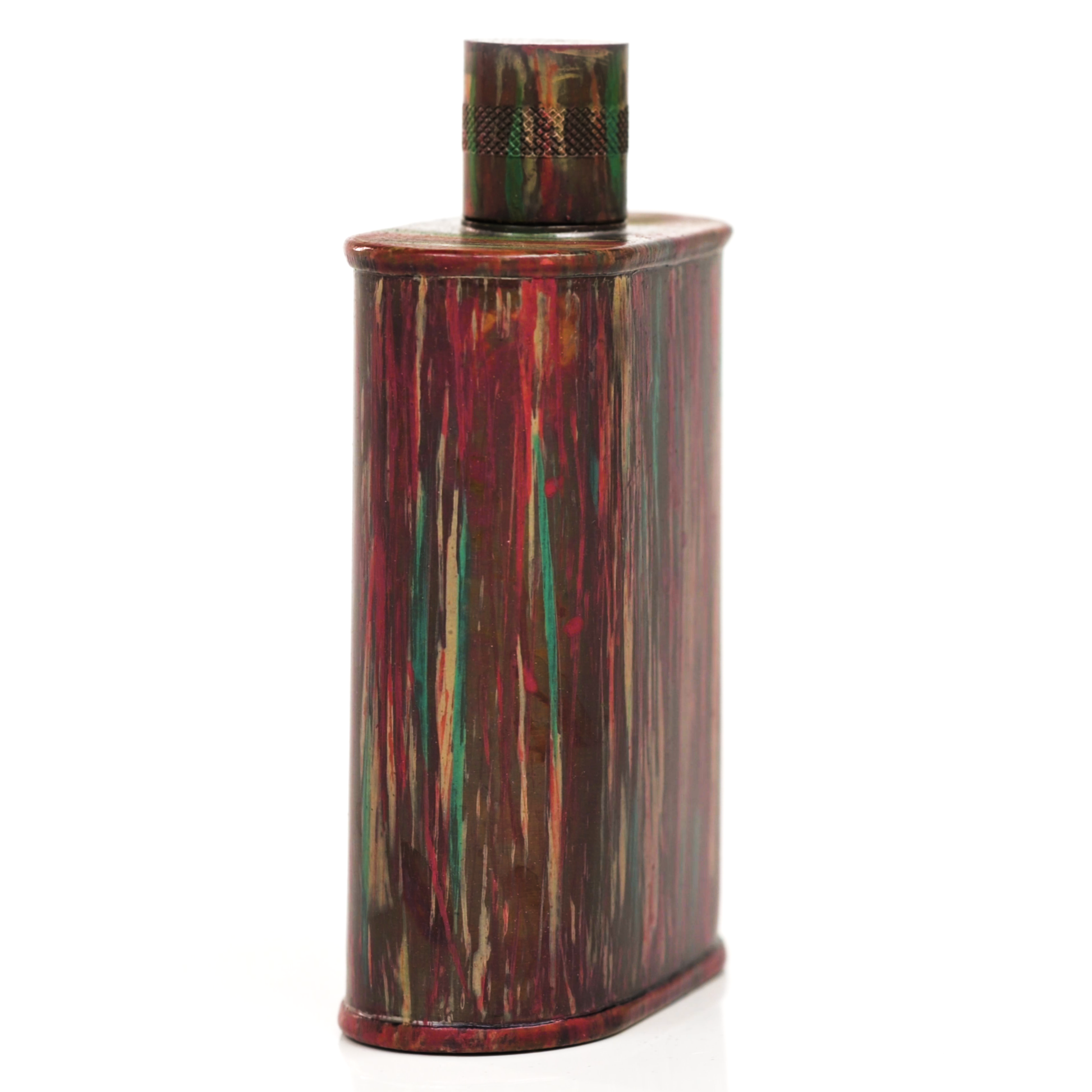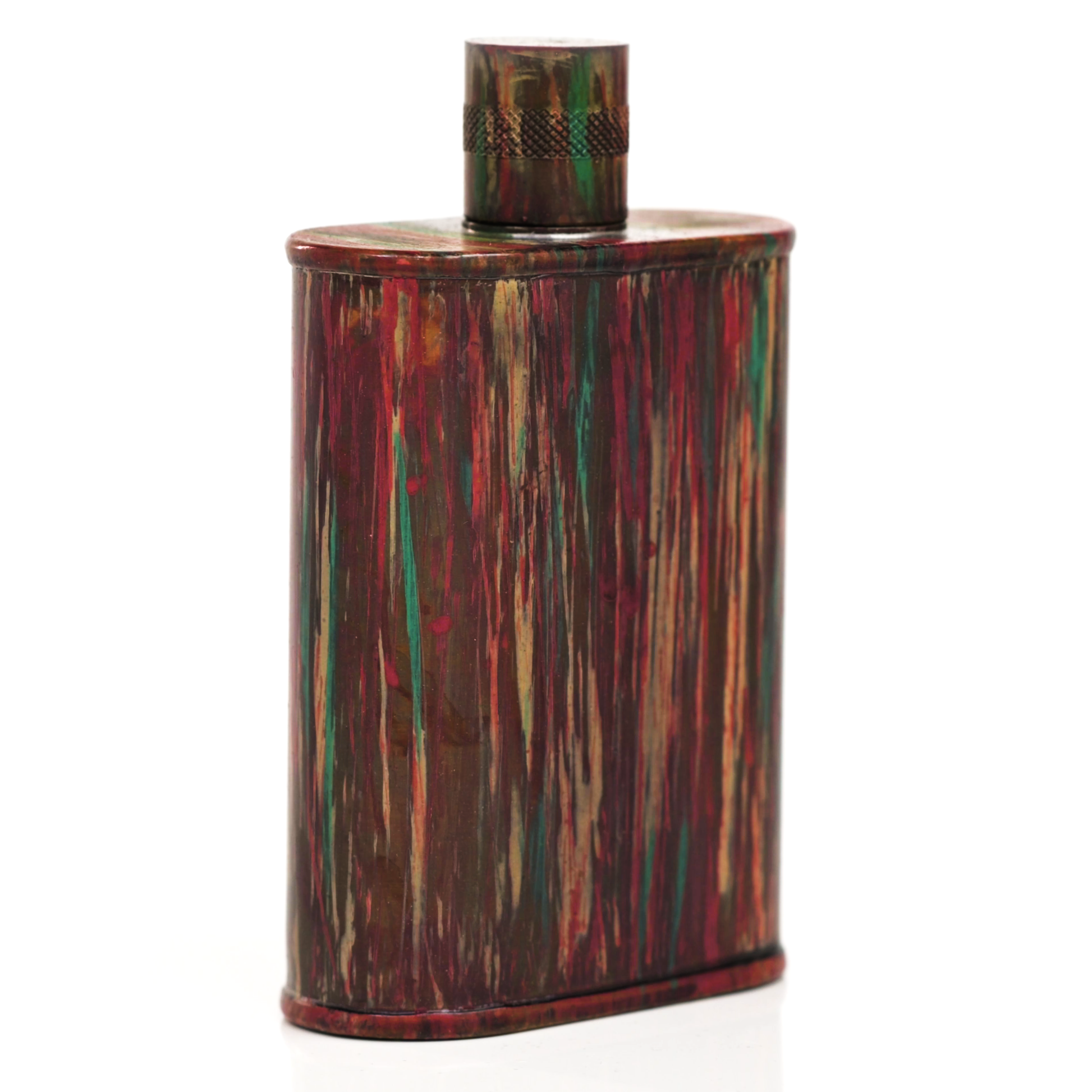 Using a special treatment process developed by Jacob Bromwell®, Enchantment takes on a warm glow like a campfire slowly winding down. The unique patina is achieved through our proprietary 3-step process—intended to replicate 30 years of aging—which includes hyper-oxidizing, heat treating, and light painting, sanding, and finishing. Its body is made of 22 gauge solid copper—finished off with a unique patina—while molten, lead-free tin is applied to the interior using a lost process that's trade-secret to our company. The end result is a uniquely individual flask like no other.