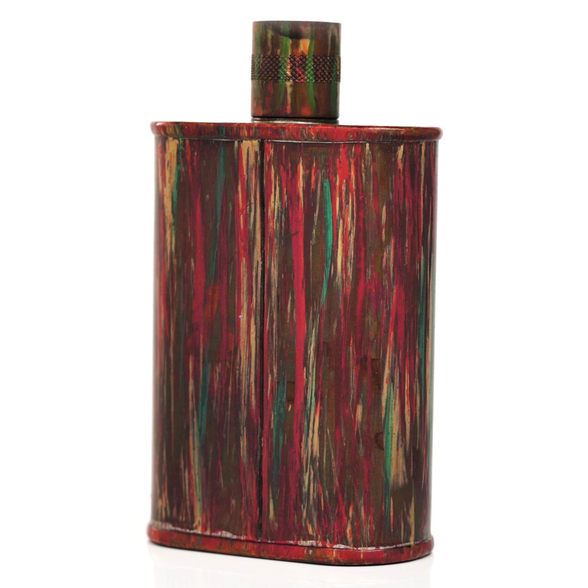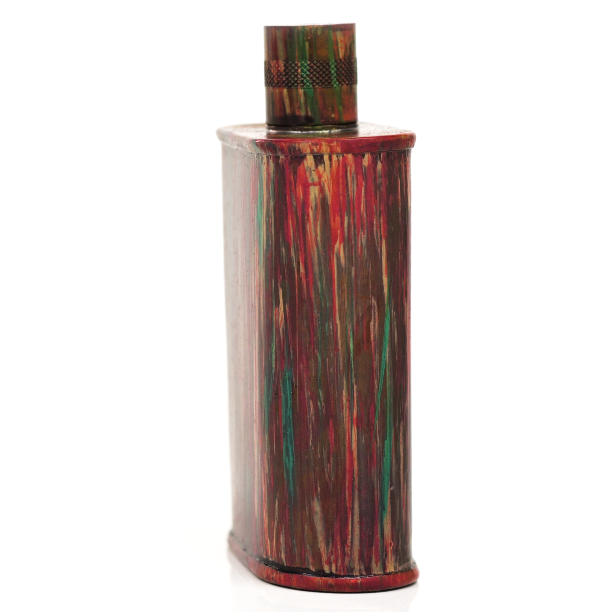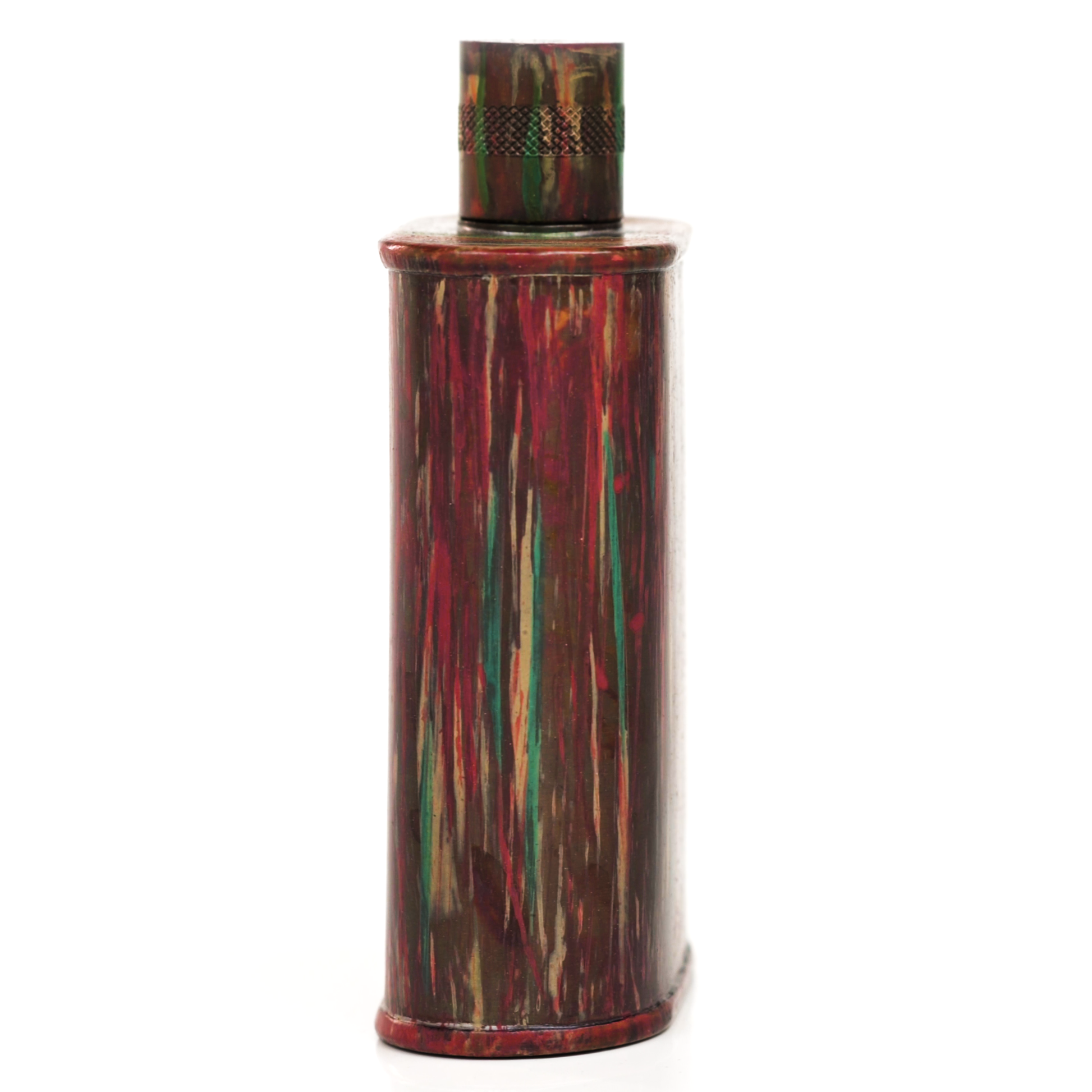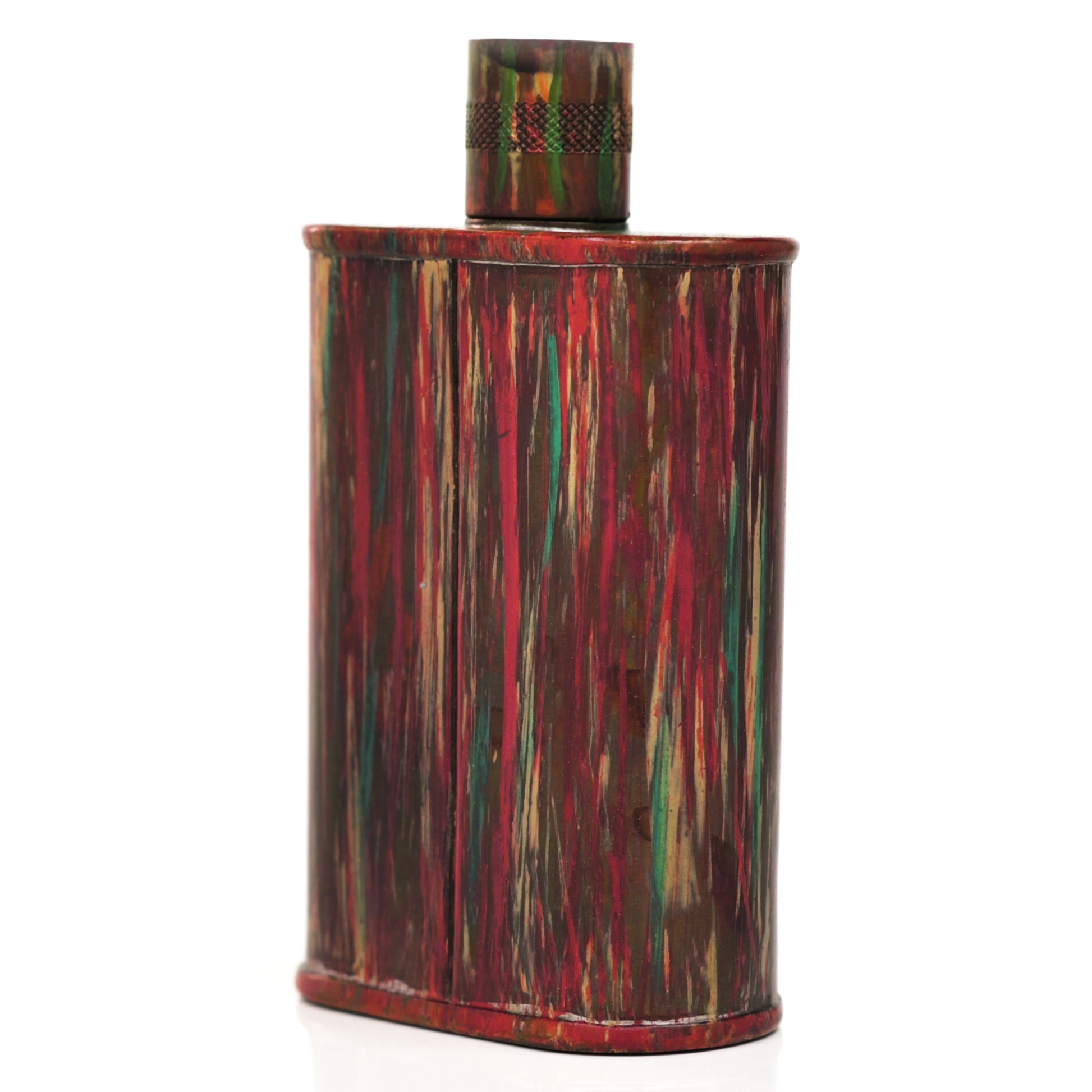 Using a special treatment process developed by Jacob Bromwell®, Enchantment takes on a warm glow like a campfire slowly winding down. The unique patina is achieved through our proprietary 3-step process—intended to replicate 30 years of aging—which includes hyper-oxidizing, heat treating, and light painting, sanding, and finishing. Its body is made of 22 gauge solid copper—finished off with a unique patina—while molten, lead-free tin is applied to the interior using a lost process that's trade-secret to our company. The end result is a uniquely individual flask like no other.