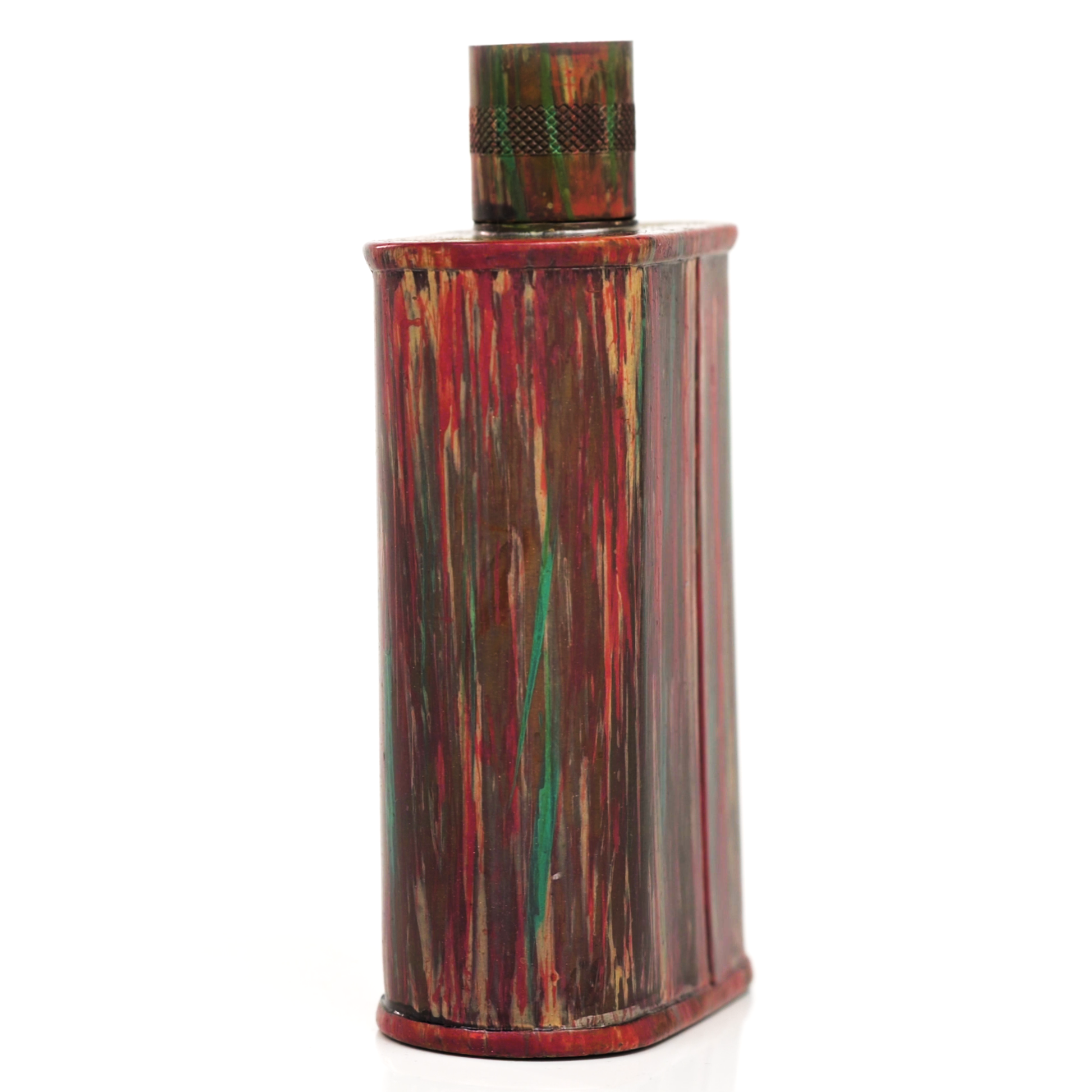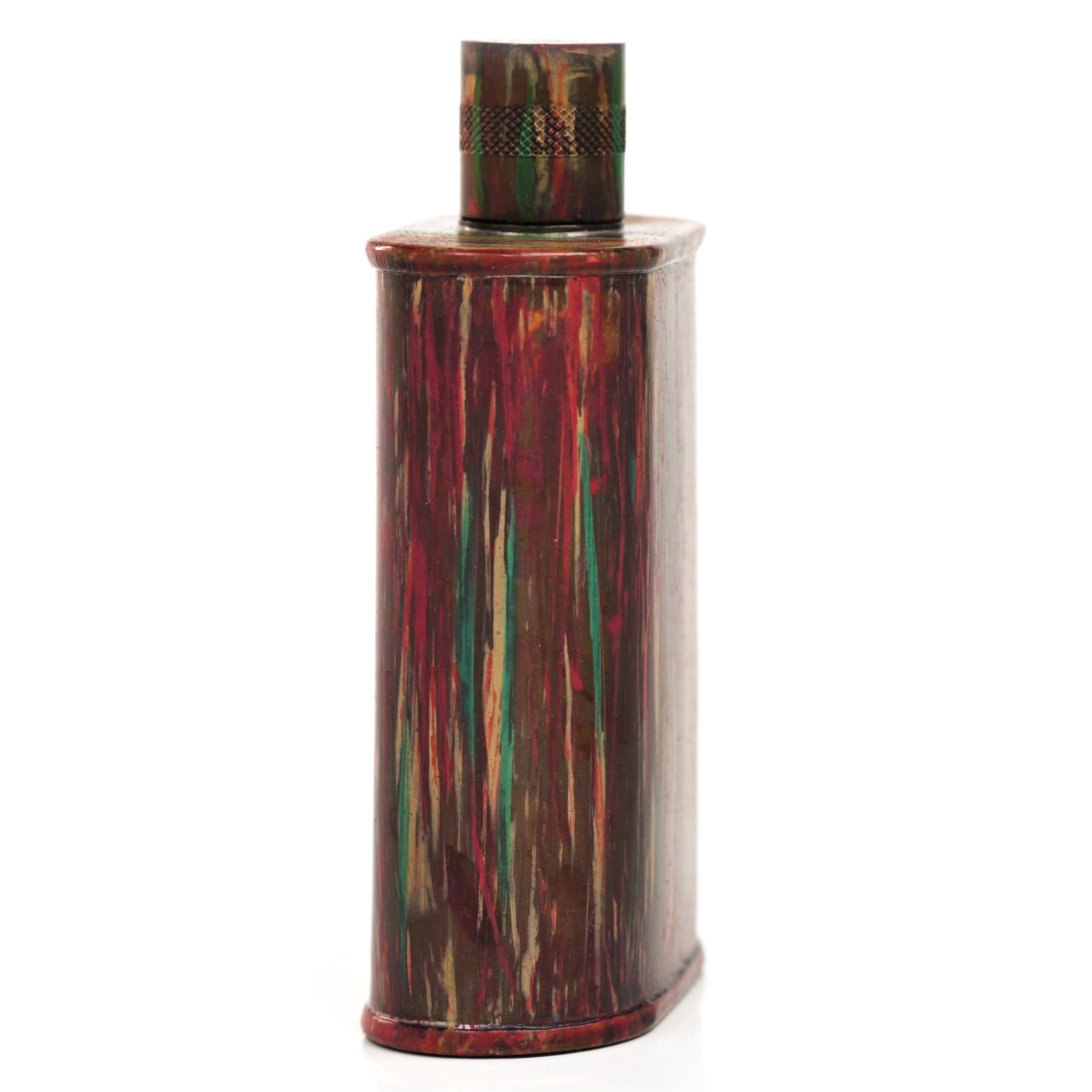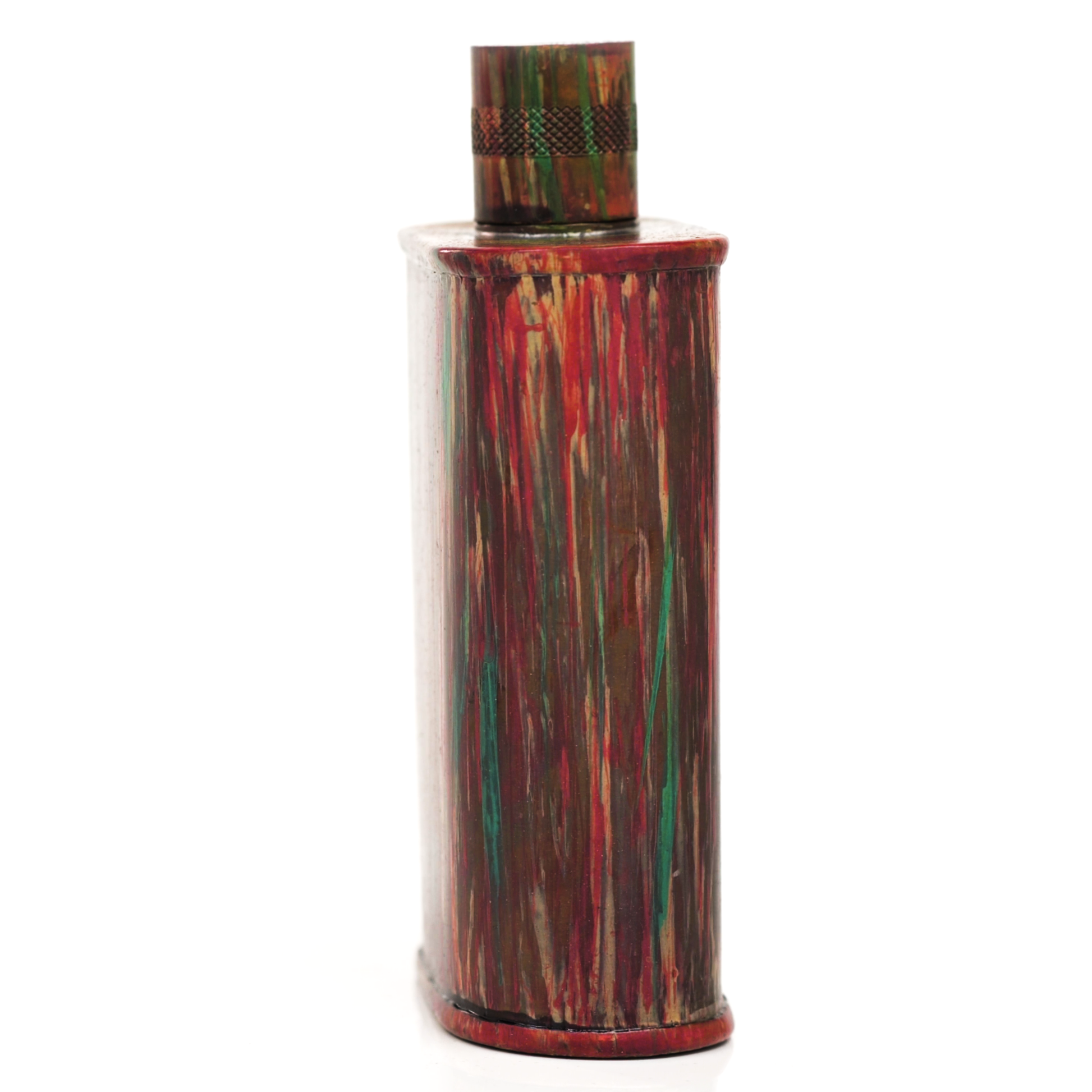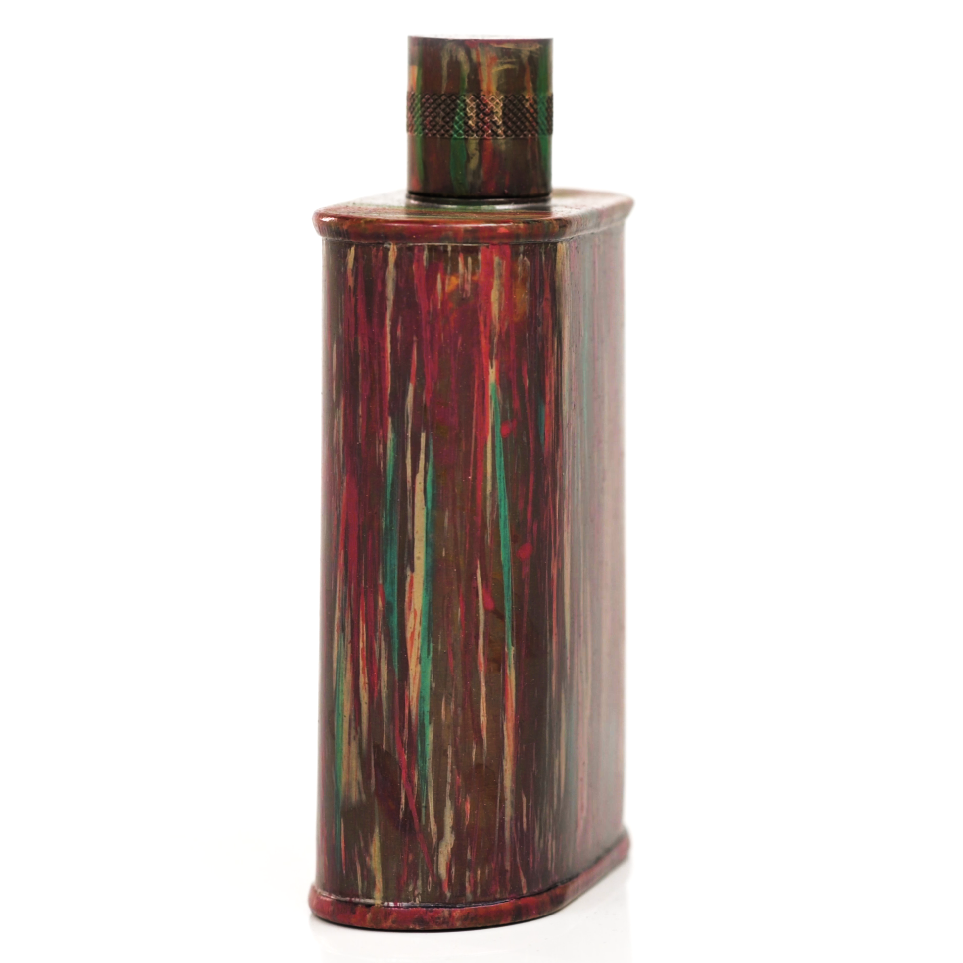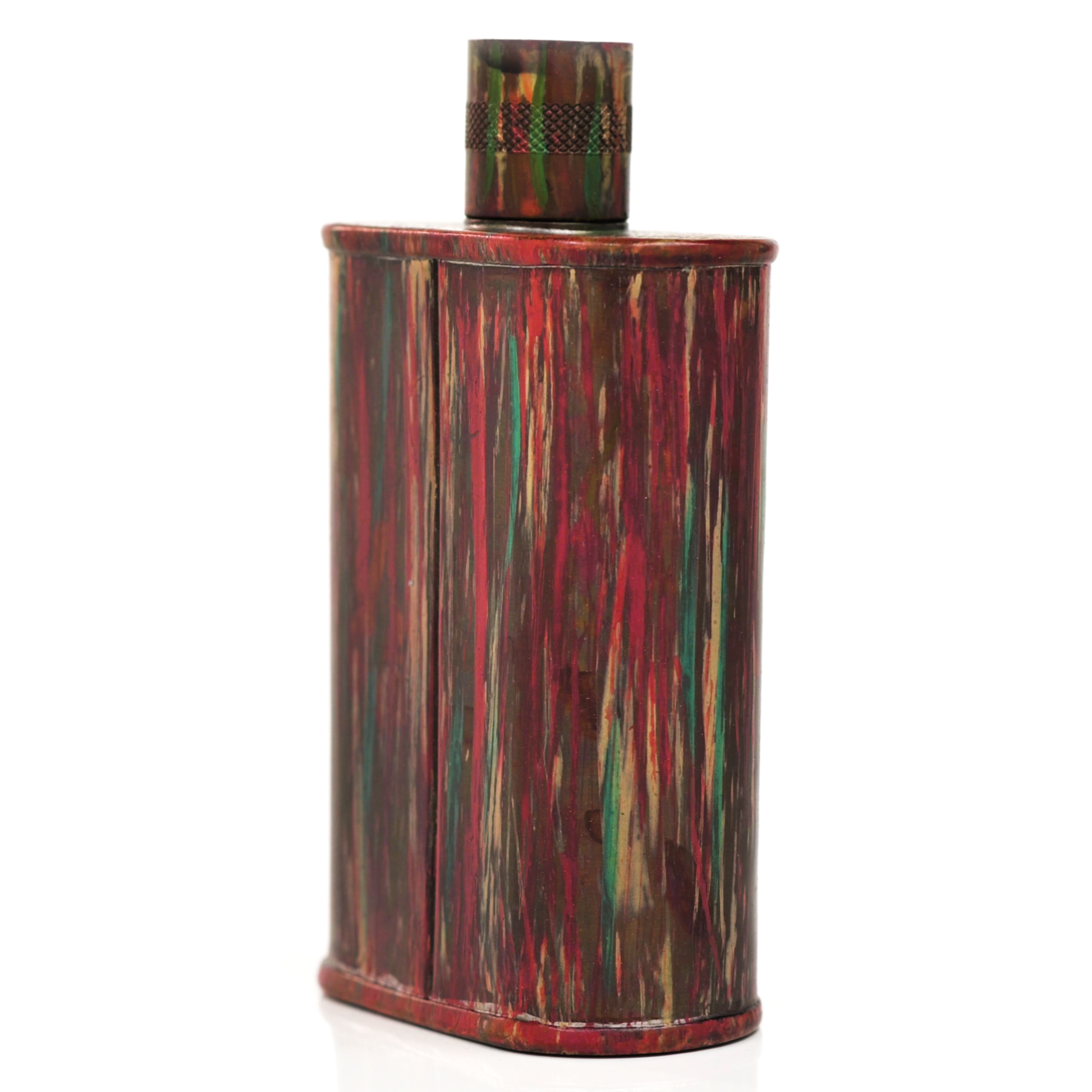 Using a special treatment process developed by Jacob Bromwell®, Enchantment takes on a warm glow like a campfire slowly winding down. The unique patina is achieved through our proprietary 3-step process—intended to replicate 30 years of aging—which includes hyper-oxidizing, heat treating, and light painting, sanding, and finishing. Its body is made of 22 gauge solid copper—finished off with a unique patina—while molten, lead-free tin is applied to the interior using a lost process that's trade-secret to our company. The end result is a uniquely individual flask like no other.