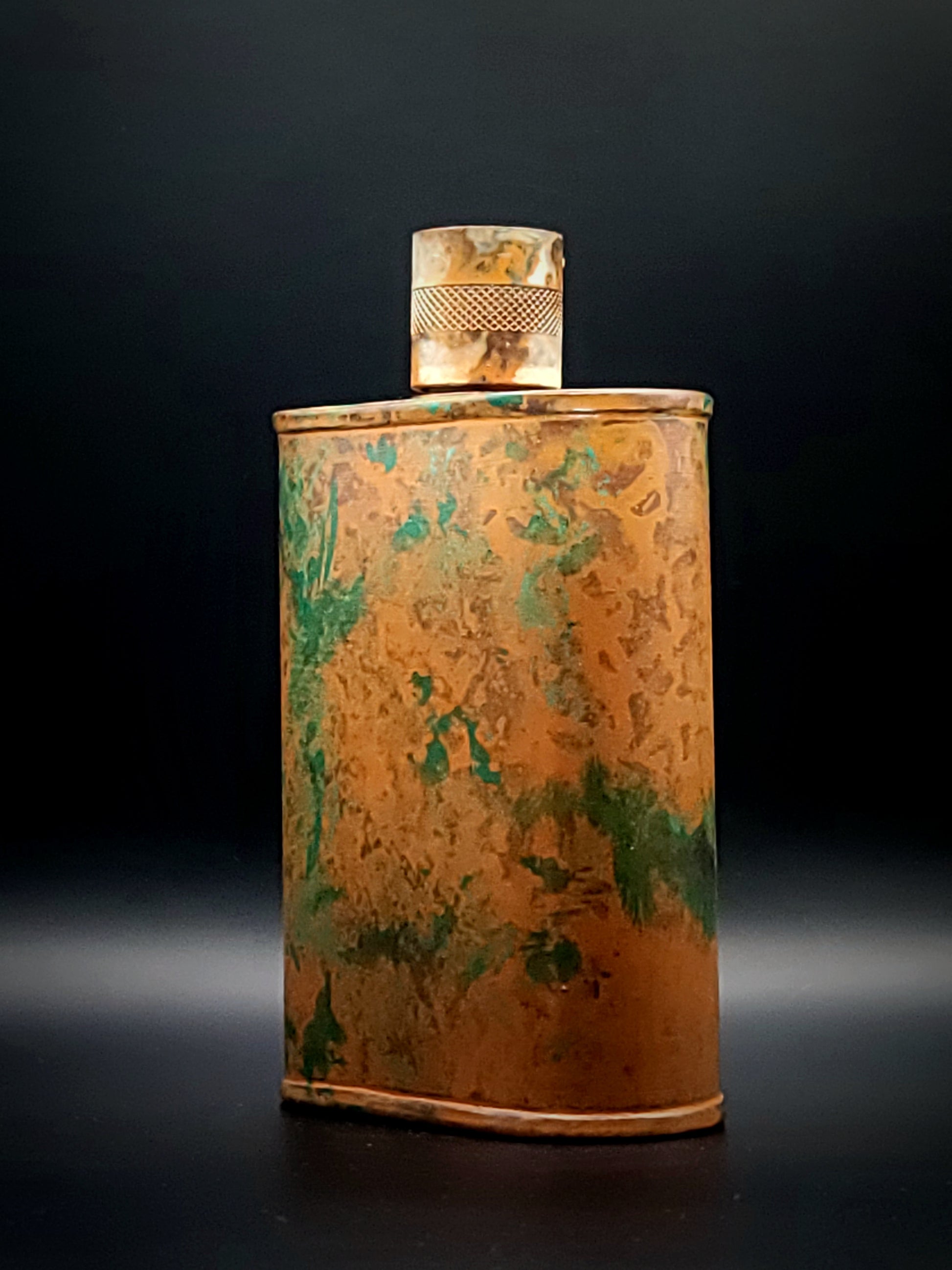 The limited run Dancing Flame celebrates those special occassions with a status symbol you can carry all season. This unique flask celebrates the iconic mountain town with style that's second to none. The patina of Dancing Flame is achieved through our proprietary 3-step process—intended to replicate 30 years of aging—which includes hyper-oxidizing, heat treating, and light painting, sanding, and finishing. Its body is made of 22 gauge solid copper—finished off with a unique patina—while molten, lead-free tin is applied to the interior using a lost process that's trade-secret to our company. The end result is a uniquely individual flask like no other.