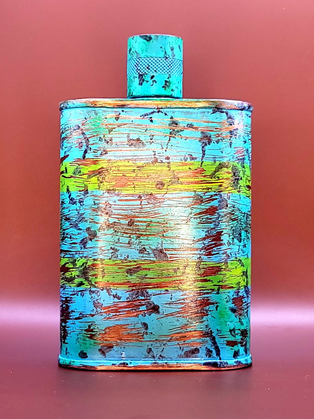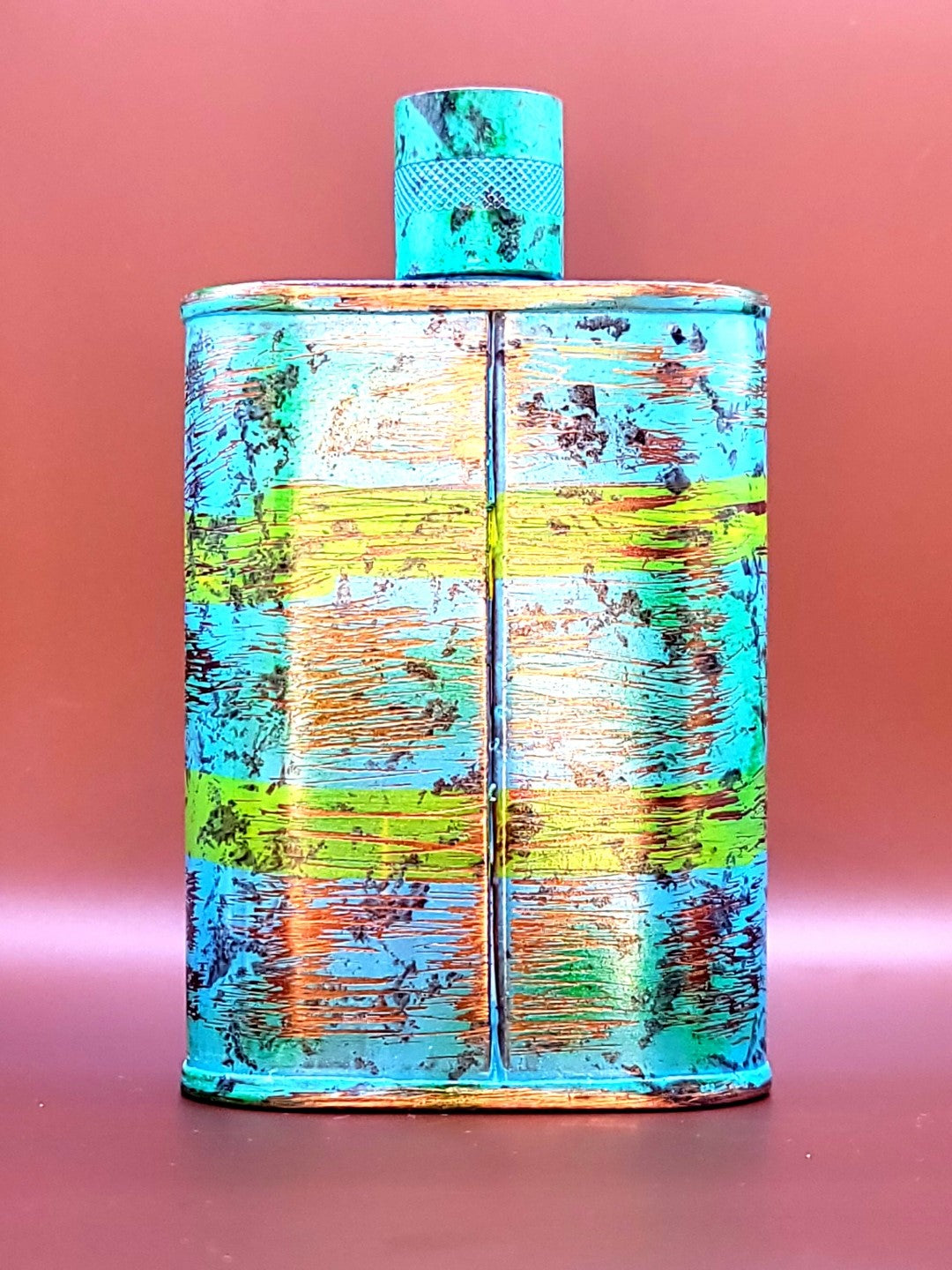 Laguna II so effectively captures the beauty of Orange County, Calif. that you’ll always be reminded of iconic Laguna Beach sunsets. The labor intensive build process starts with a Vermonter® flask made of 22 gauge solid copper, with molten, lead-free tin applied to the interior using a lost process that's trade-secret to our company. The artistic patina is then masterfully achieved through a proprietary 3-step process that includes hyper-oxidizing, finishing, and heat treating to "lock it in." The end result is a bespoke Vermonter® flask that is not only perfect for everyday carry, but also a highly collectable status symbol.