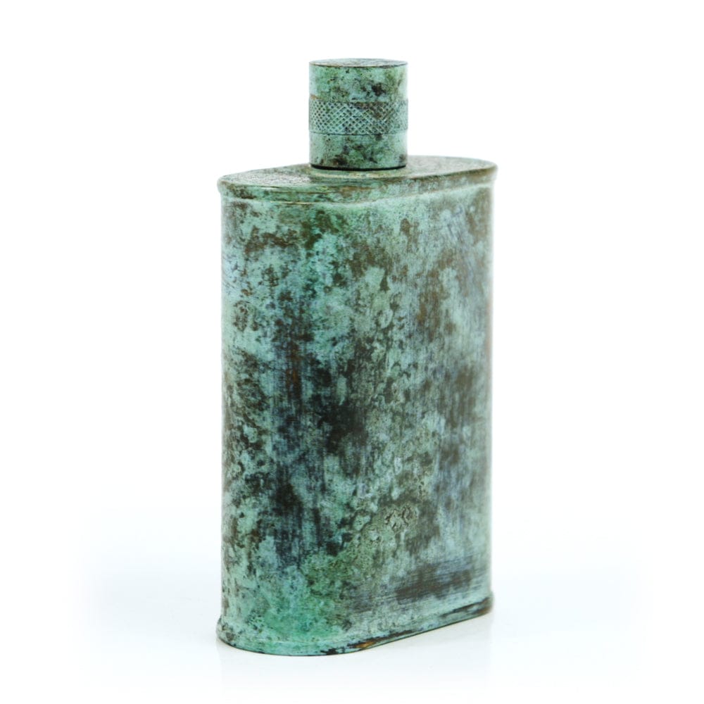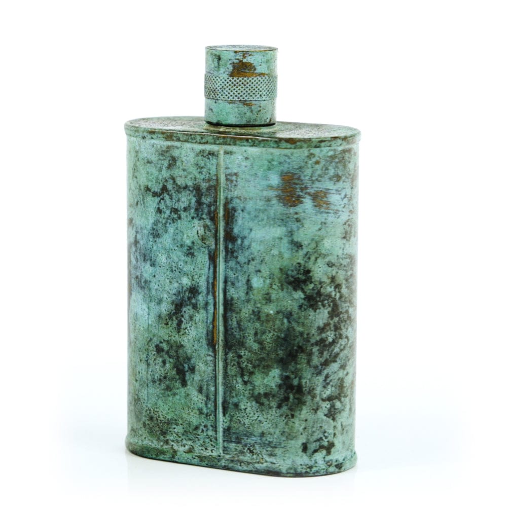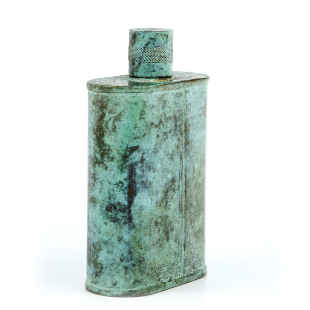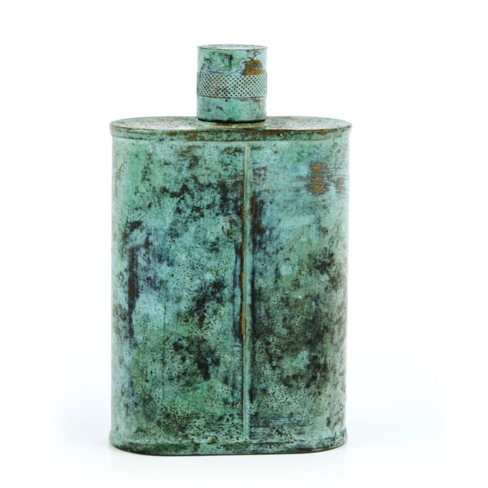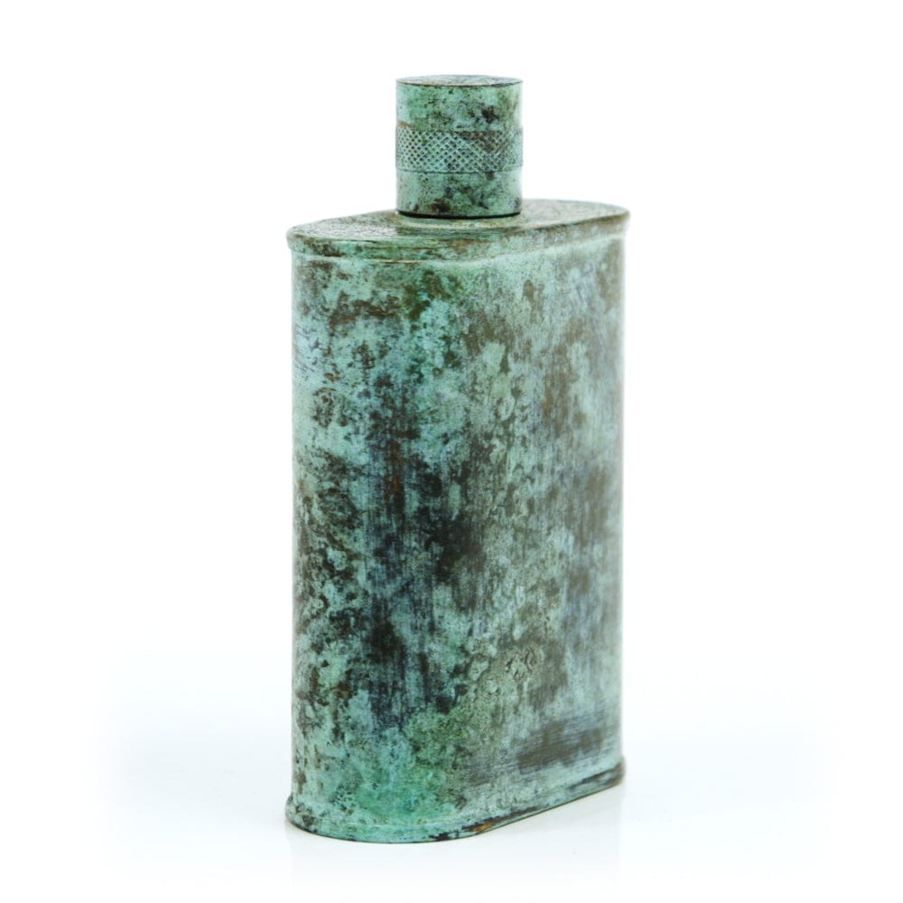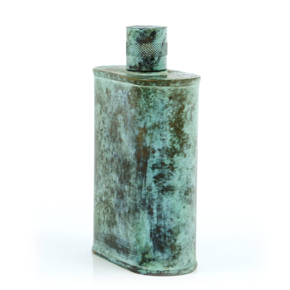 Pacific has been treated to take on a beautiful mottled green patina that gives it a vintage look, like it’s been allowed to oxidize and age. The patina is achieved through our proprietary 3-step process—intended to replicate 30 years of aging—which includes hyper-oxidizing, heat treating, and light painting, sanding, and finishing. Its body is made of 22 gauge solid copper—finished off with a unique patina—while molten, lead-free tin is applied to the interior using a lost process that's trade-secret to our company. The end result is a uniquely individual flask like no other.