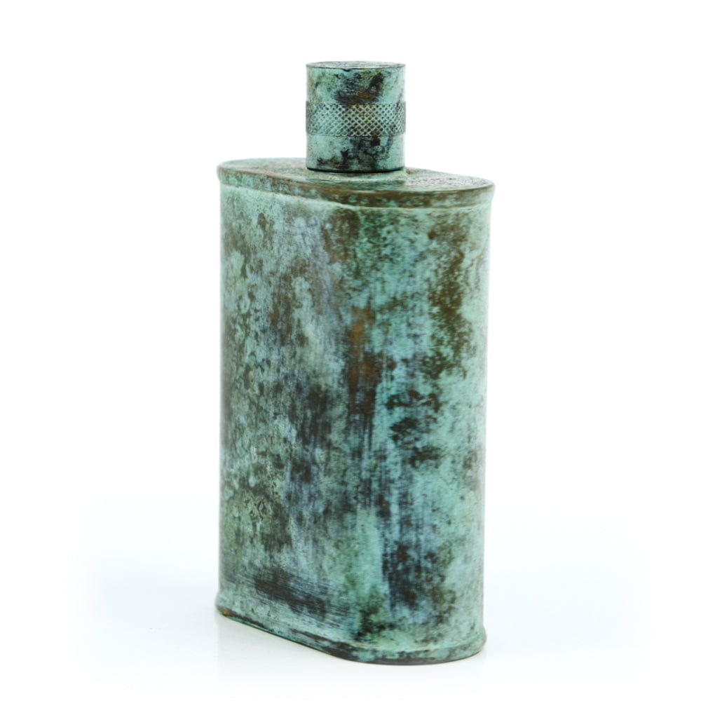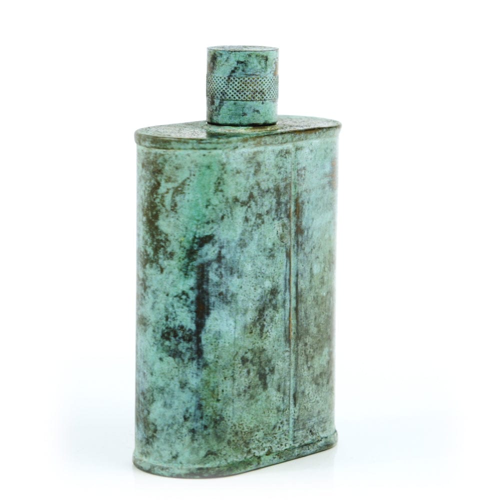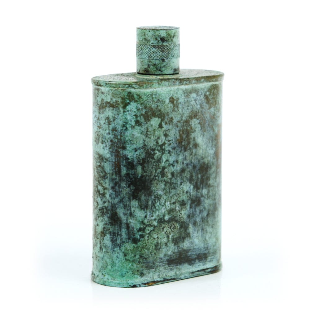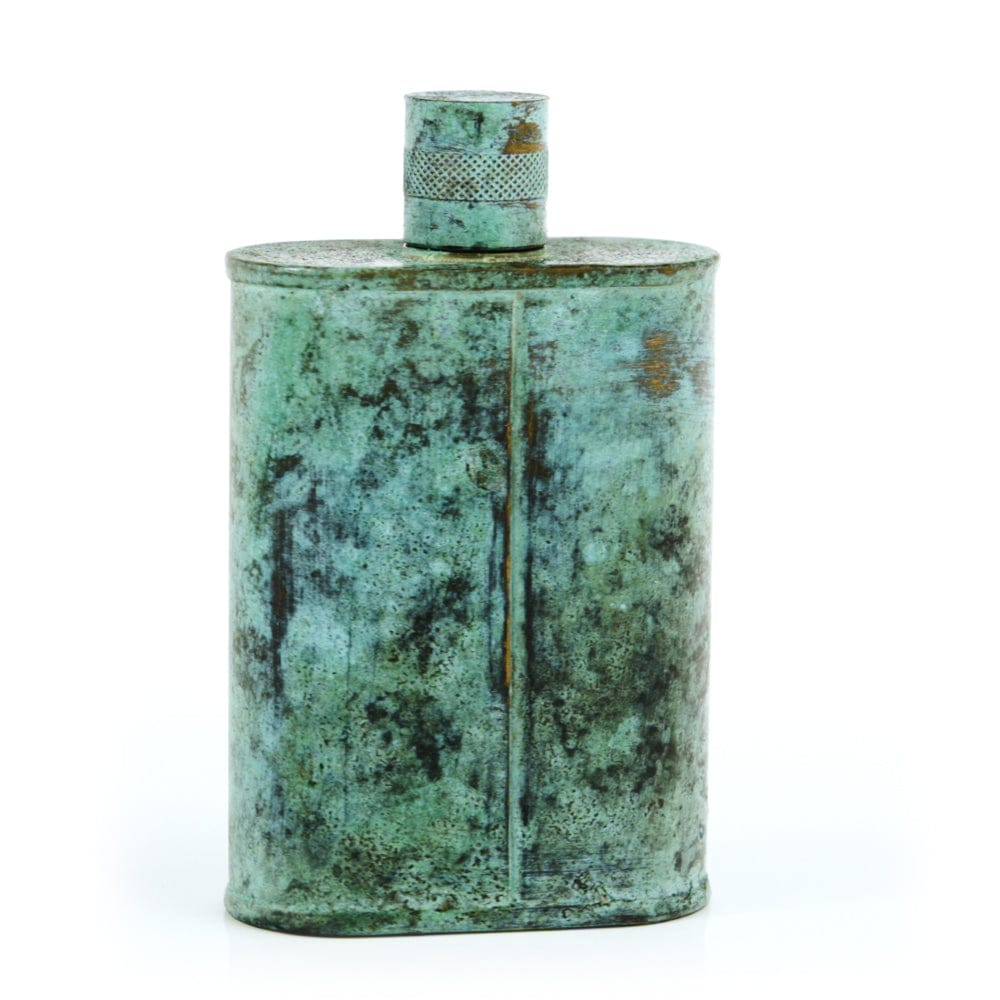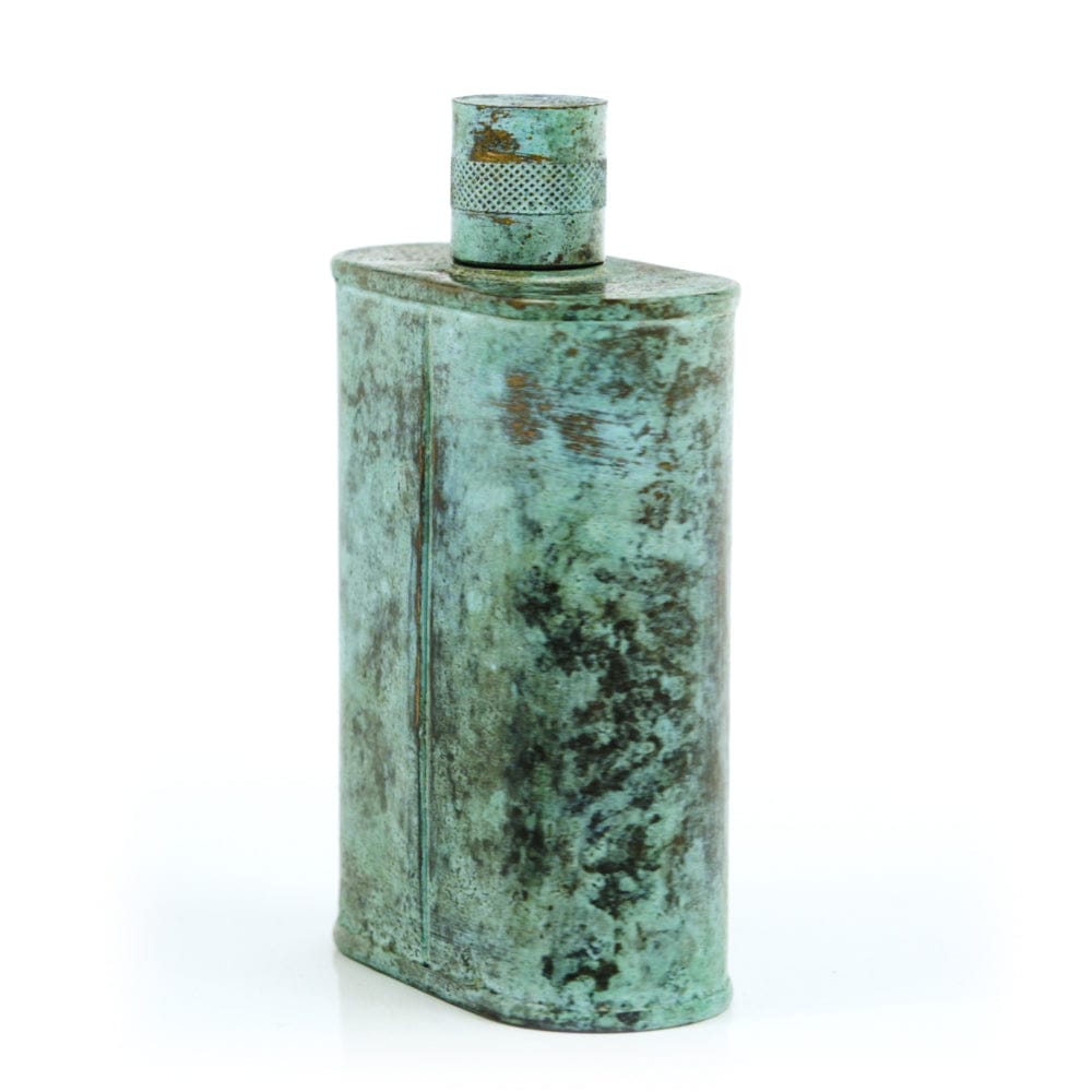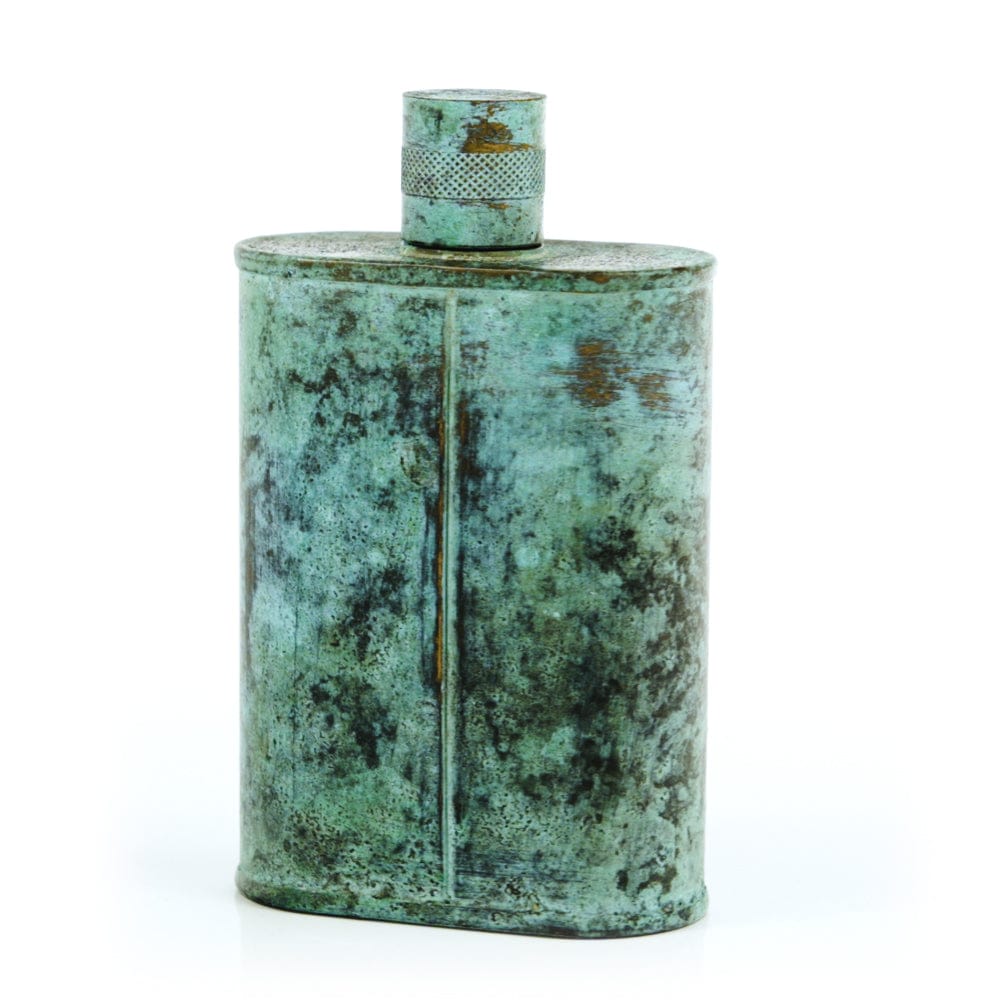 Pacific has been treated to take on a beautiful mottled green patina that gives it a vintage look, like it’s been allowed to oxidize and age. The patina is achieved through our proprietary 3-step process—intended to replicate 30 years of aging—which includes hyper-oxidizing, heat treating, and light painting, sanding, and finishing. Its body is made of 22 gauge solid copper—finished off with a unique patina—while molten, lead-free tin is applied to the interior using a lost process that's trade-secret to our company. The end result is a uniquely individual flask like no other.