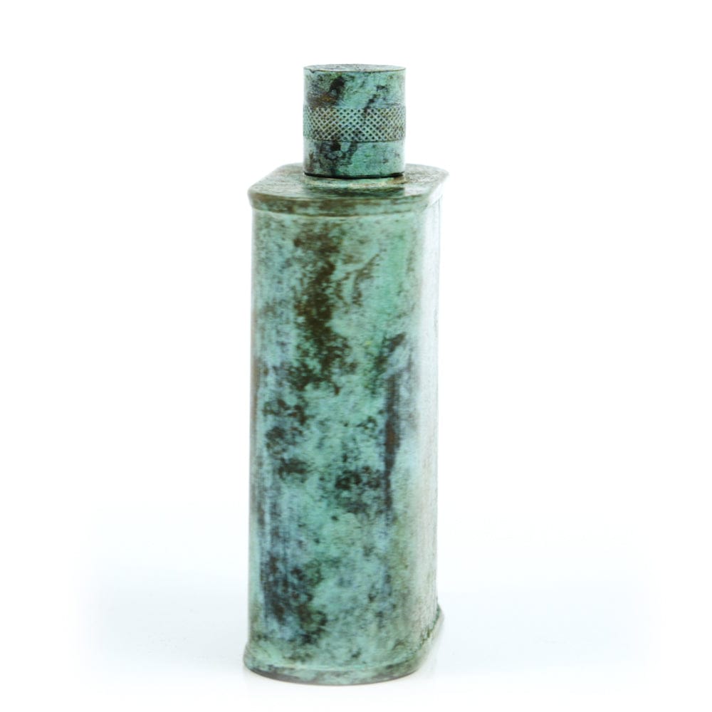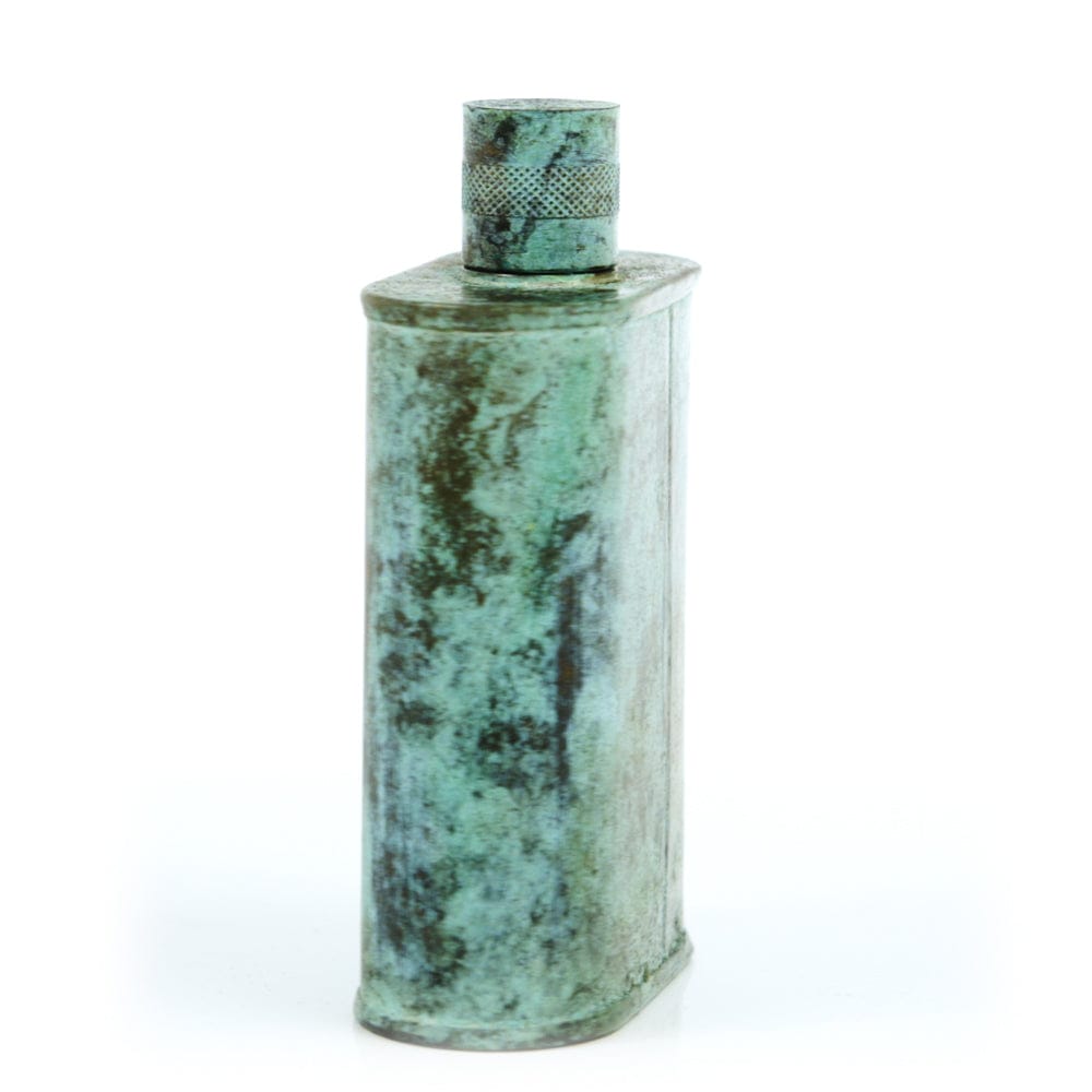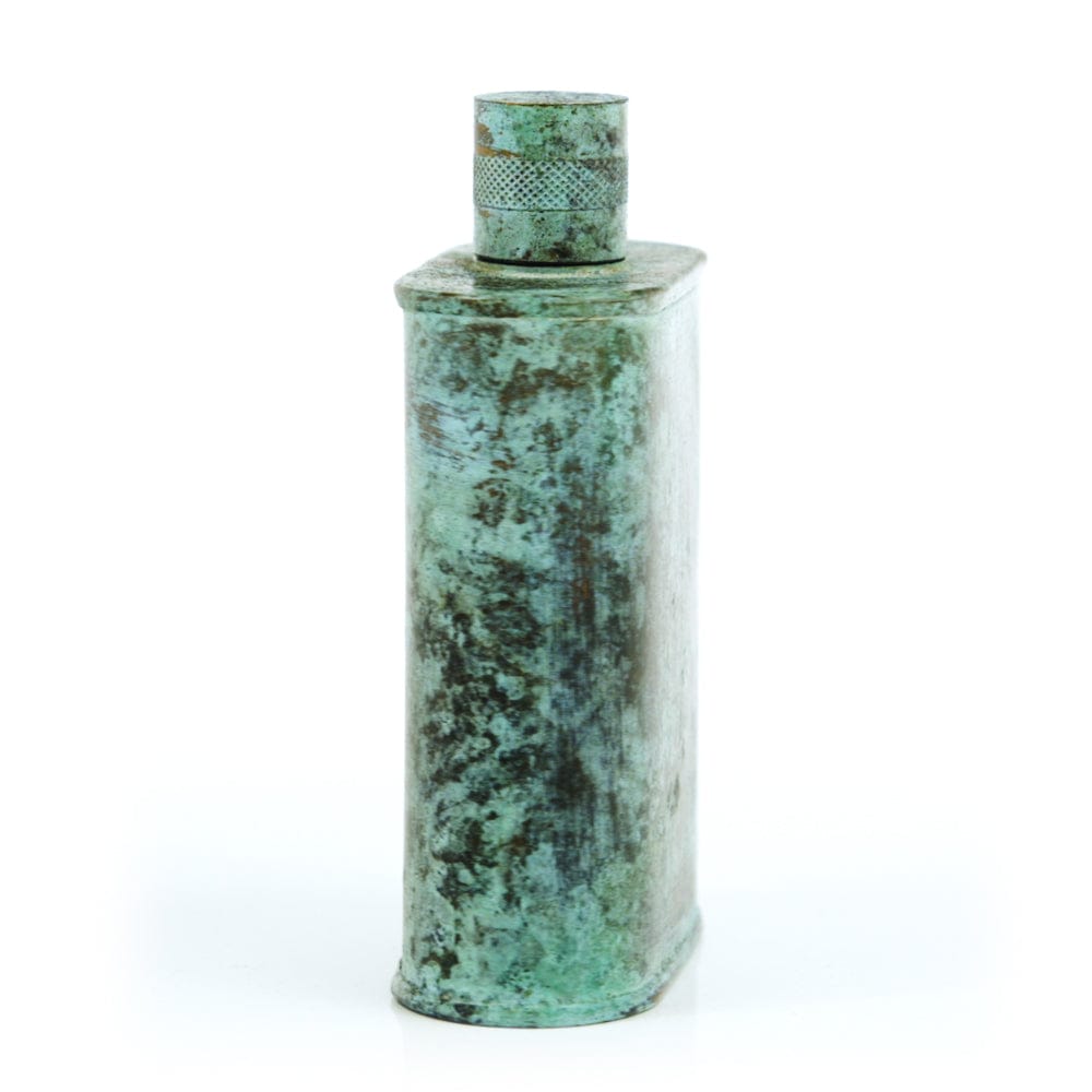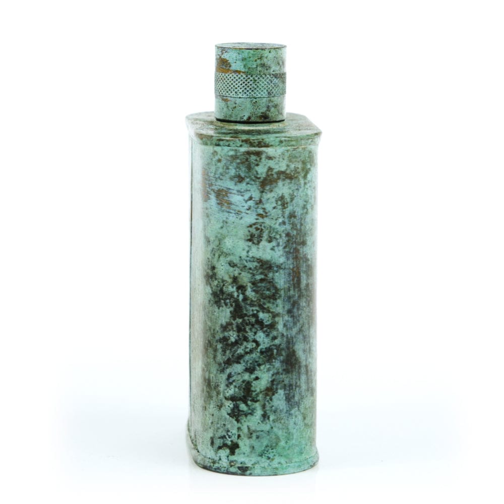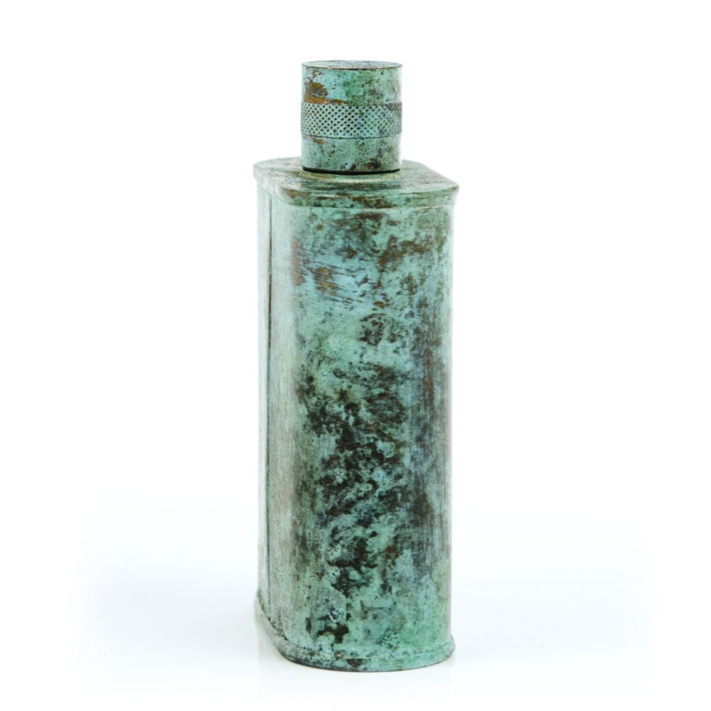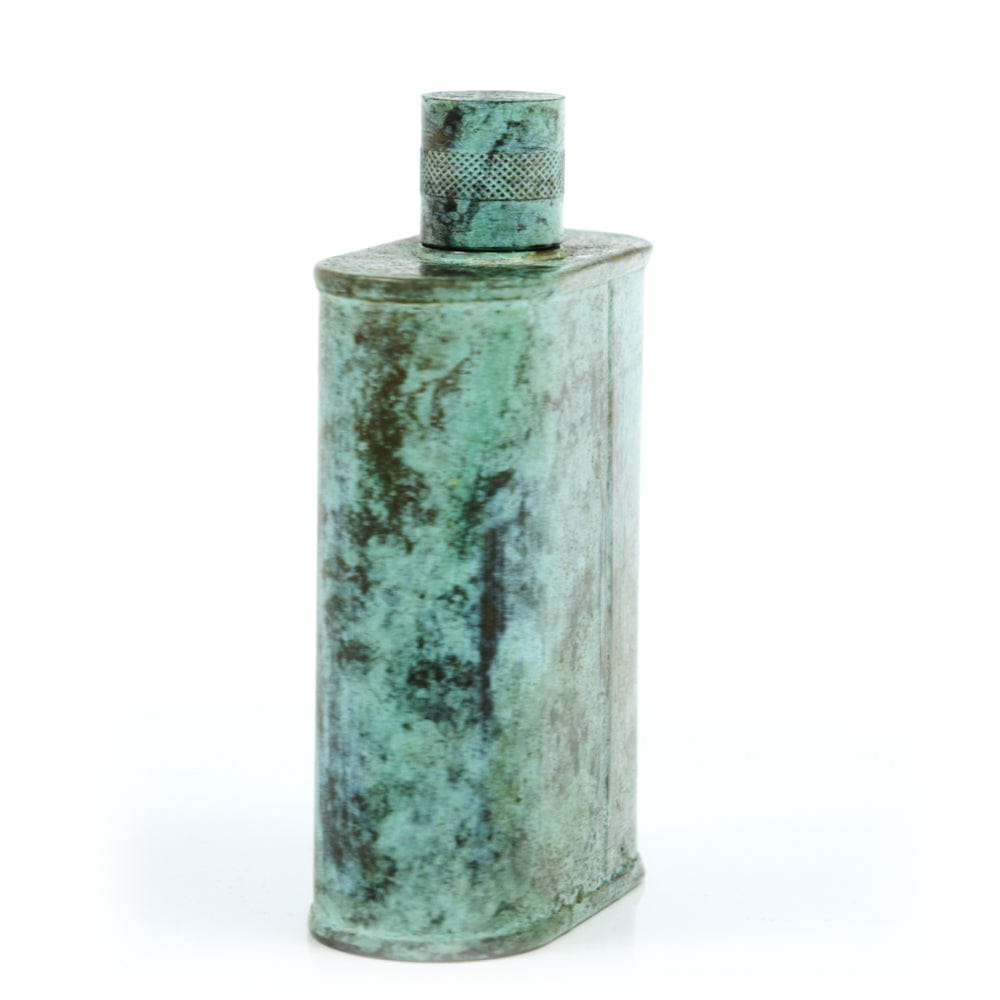 Pacific has been treated to take on a beautiful mottled green patina that gives it a vintage look, like it’s been allowed to oxidize and age. The patina is achieved through our proprietary 3-step process—intended to replicate 30 years of aging—which includes hyper-oxidizing, heat treating, and light painting, sanding, and finishing. Its body is made of 22 gauge solid copper—finished off with a unique patina—while molten, lead-free tin is applied to the interior using a lost process that's trade-secret to our company. The end result is a uniquely individual flask like no other.
