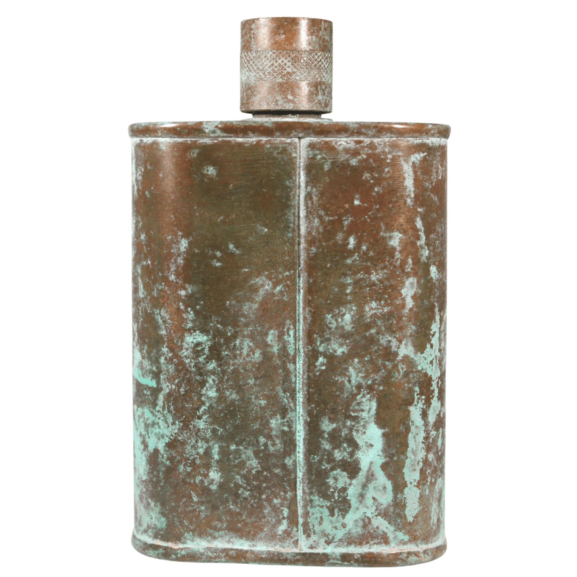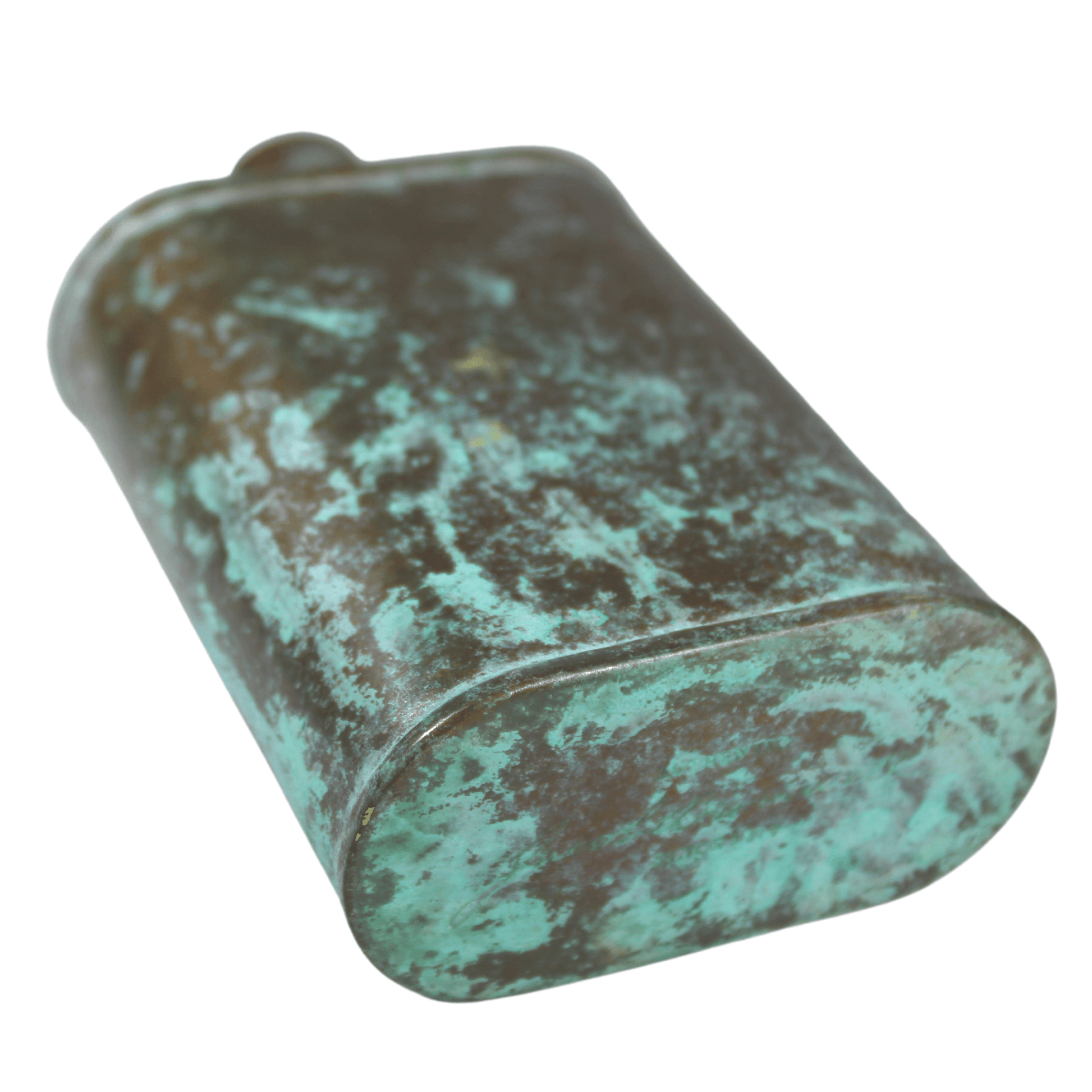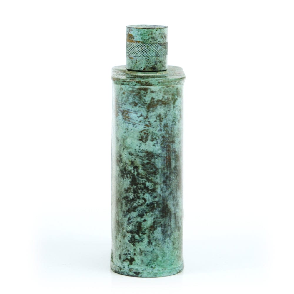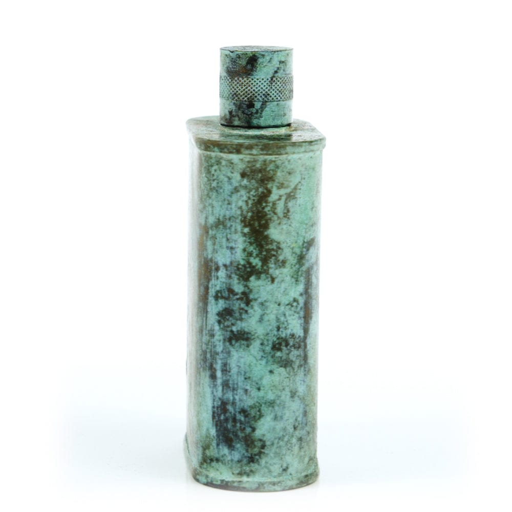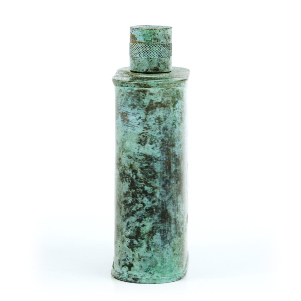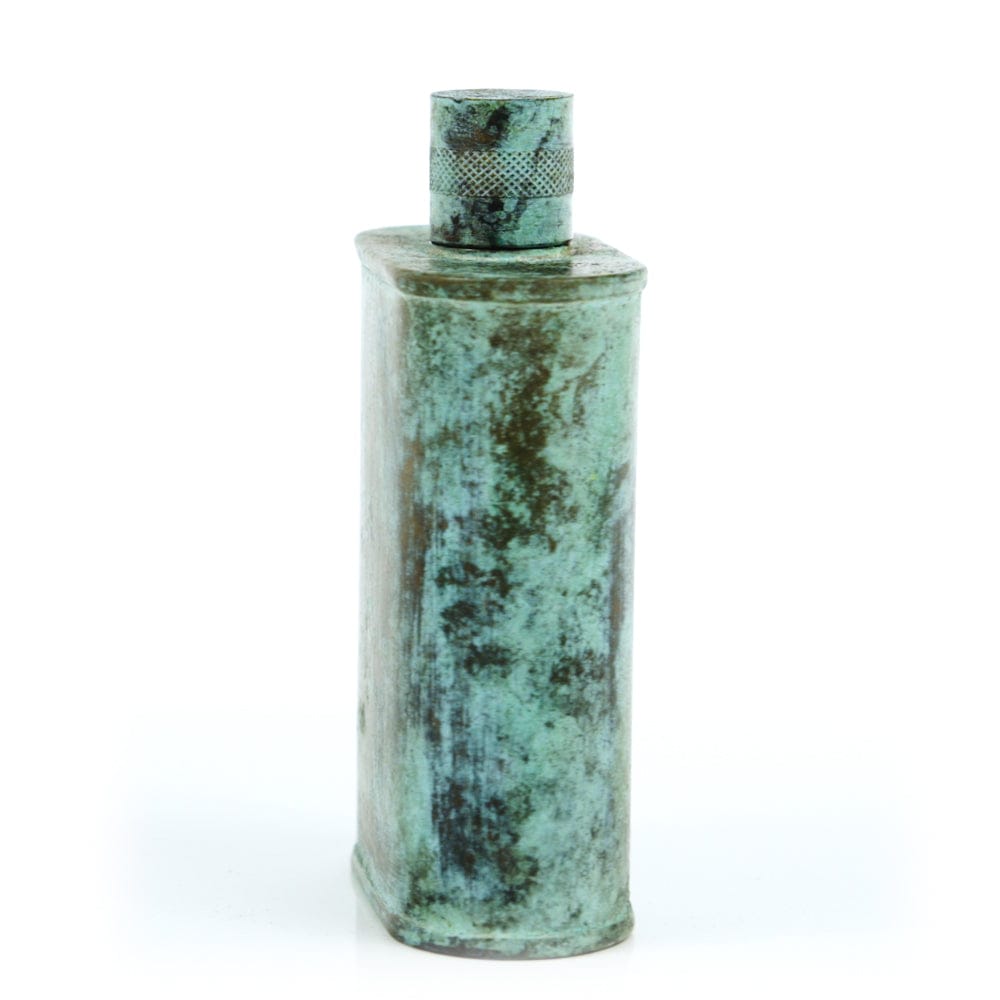Pacific has been treated to take on a beautiful mottled green patina that gives it a vintage look, like it’s been allowed to oxidize and age. The patina is achieved through our proprietary 3-step process—intended to replicate 30 years of aging—which includes hyper-oxidizing, heat treating, and light painting, sanding, and finishing. Its body is made of 22 gauge solid copper—finished off with a unique patina—while molten, lead-free tin is applied to the interior using a lost process that's trade-secret to our company. The end result is a uniquely individual flask like no other.