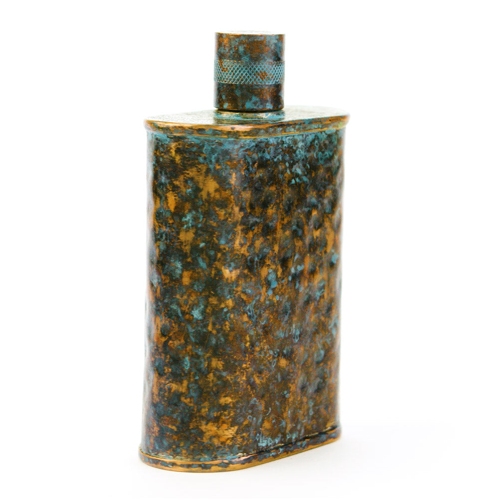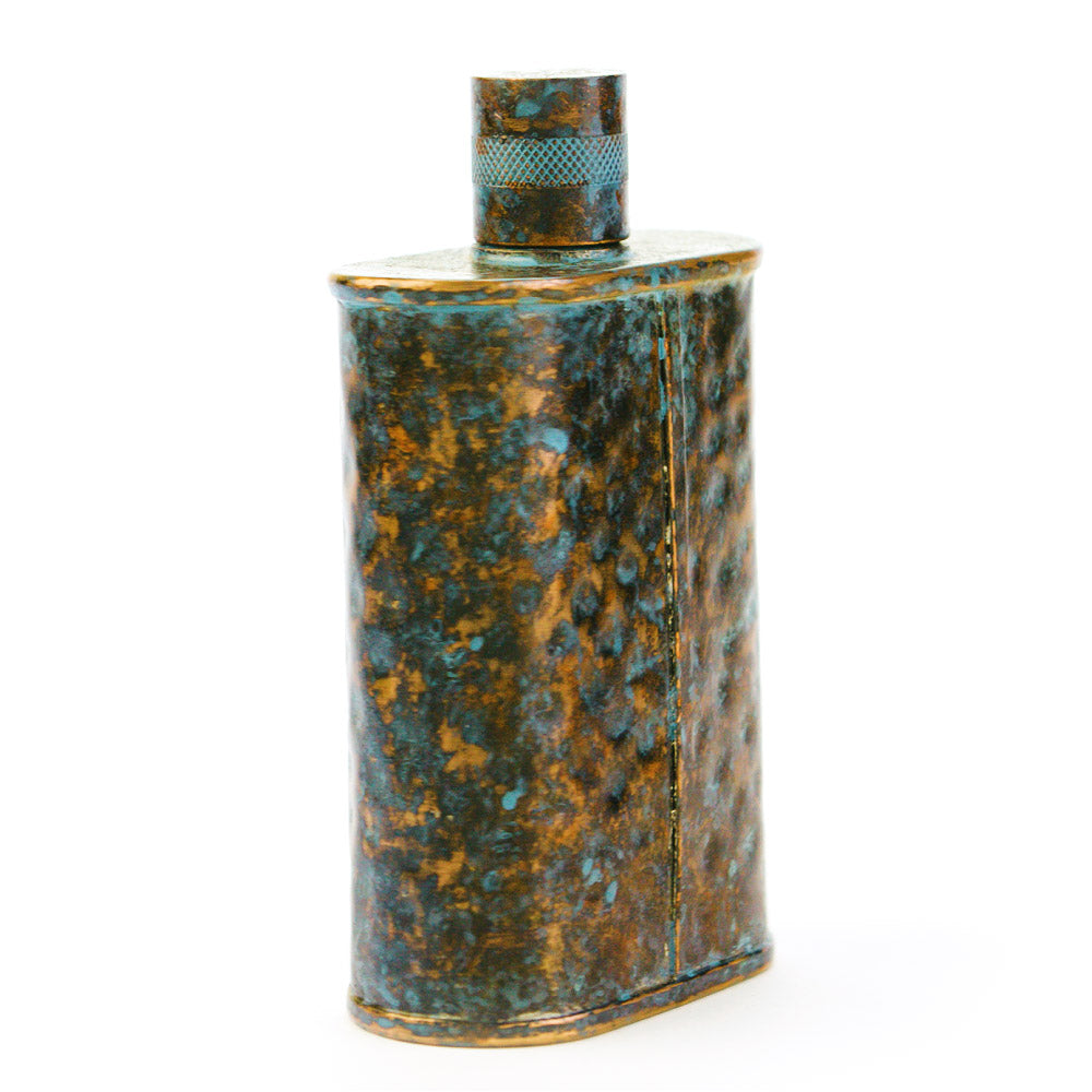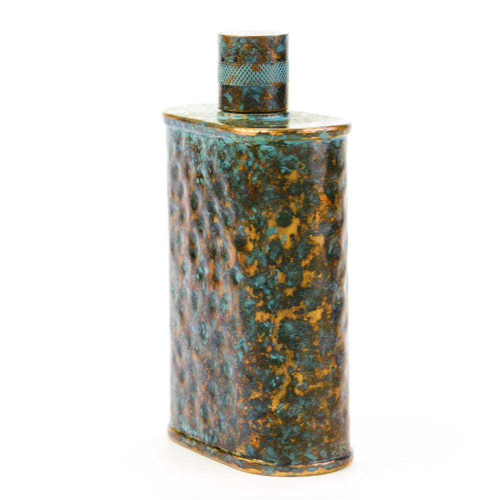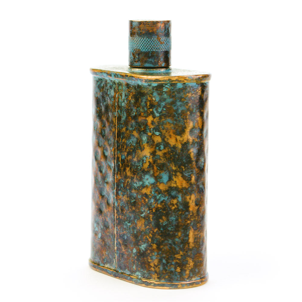 This flask's unique design has won over our designers and engineers alike, with a design derived from our best-selling all-copper Legacy flask. Comfortable to hold with a heavy weight in-hand, Sapphire is an exceptionally well built flask, designed not to be concealed but to be enjoyed. The confluence of legendary American design, trade-secret metalworking techniques, and precision machining, Sapphire is one of our finest hammered copper creations to date. Use it, enjoy it, and pass it down to the next generation—or keep it unopened and enjoy the long-term appreciation. Either way, Sapphire is a rare opportunity to acquire a collectable Jacob Bromwell® status symbol.