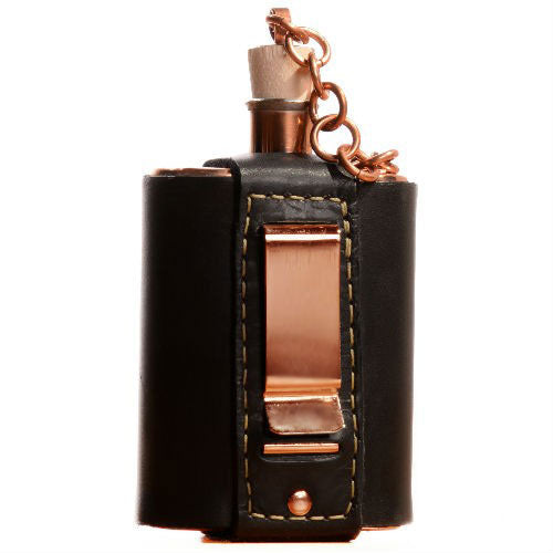 Let’s hear it for old-timey cowboys. The six-shooters. The shaving with buck knives. The handmade copper flasks with vintage wooden stoppers made specifically for housing barrel-aged American whiskey. Appropriately named, The Charles is a spin off of our popular Model One flask and features a detachable copper chain and hand-dyed leather carrying case with an integrated copper belt clip. An heirloom like this only gets better with age. Limited run of 99 examples.