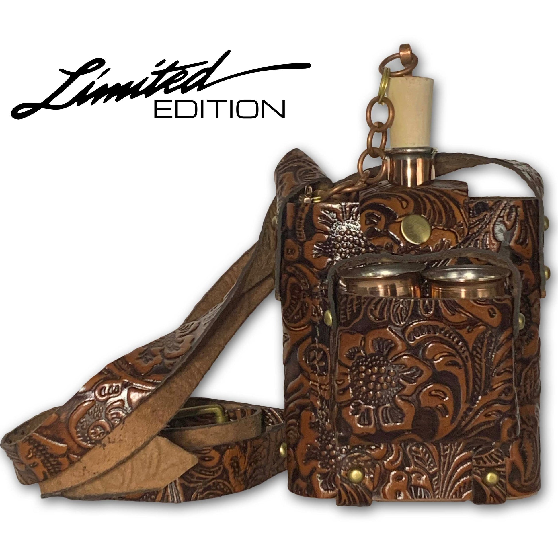 Vacation is a state of mind. With good weather rapidly approaching, it's time to make sure your flask fits your summer wardrobe. Available to just 50 lucky customers globally, The Henry: Kona Edition features a unique 9 oz. Model Two flask—exclusive to The Henry—with an affixed copper chain and a premium Hawaiian-themed leather carrying case that's hand-dyed, hand-cut, and hand-sewn with contrasting diamond white stitching. The two removable, solid copper shooters are designed to make you feel right at home as you enjoy your favorite barrel-aged bourbon—and properly complete the set. Covered in a tropical floral motif from The Big Island, this relaxed summer status symbol has everything you need in one handsome package, with every detail thought through in full Jacob Bromwell® style. Bring your flask, grab an icy-cold mai tai, and start living la vida aloha.