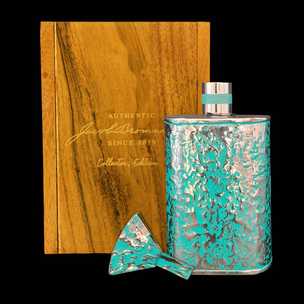 Platinum Vermonter® cuenta con un matraz Jacob Bromwell® Vermonter® y un embudo exclusivo chapados en platino duro a partir de lingotes de platino derretido al 99,99%. Encargado por el director ejecutivo de la compañía para su colección privada y disponible para su compra por primera vez, este frasco y embudo chapados en platino sorprendentemente hermosos se entregan dentro de una caja de presentación de madera de acacia de edición de coleccionista, lacada y con la marca en papel de aluminio brillante. Destinado a enriquecer su estilo de vida (y limitado a 99 ejemplares en todo el mundo), no pierda esta rara oportunidad de adquirir un símbolo de estatus altamente coleccionable y de grado de inversión a un valor excepcional.