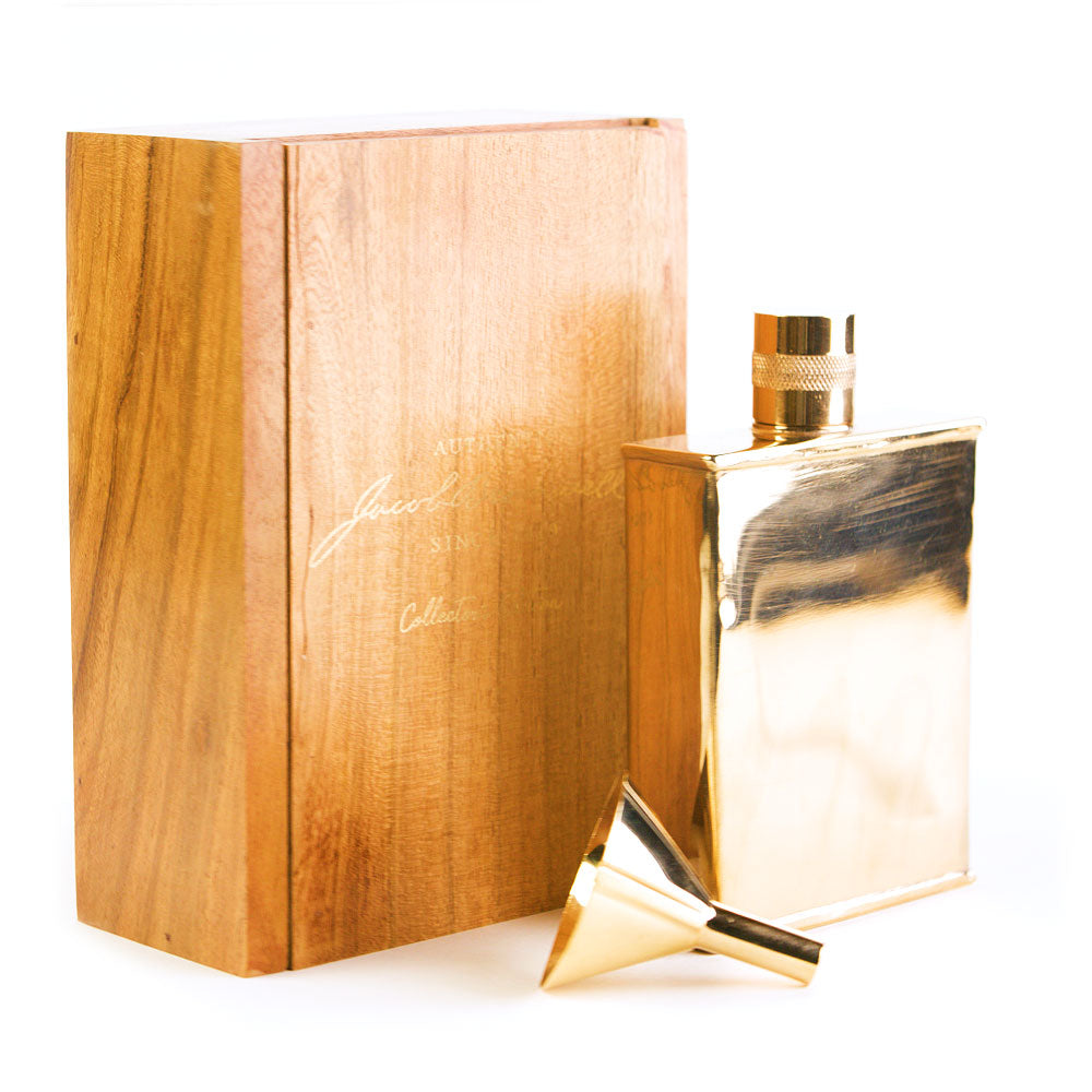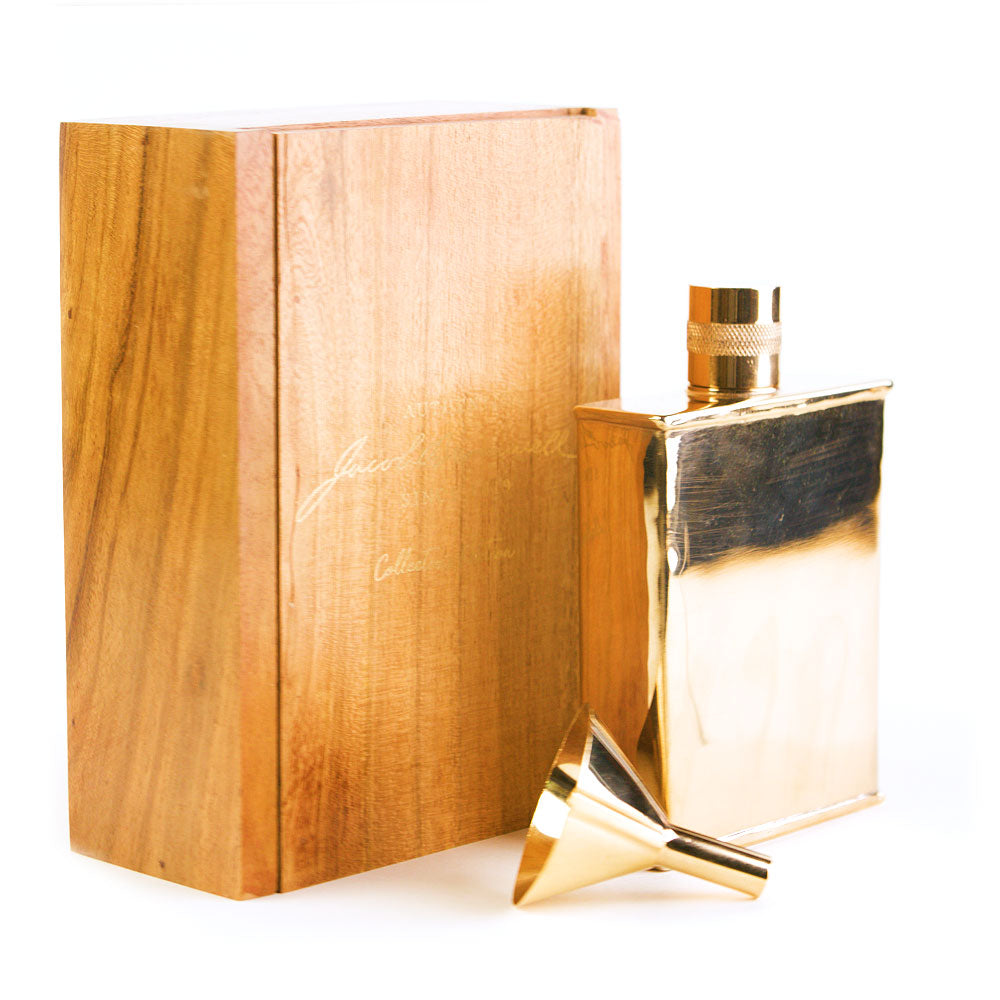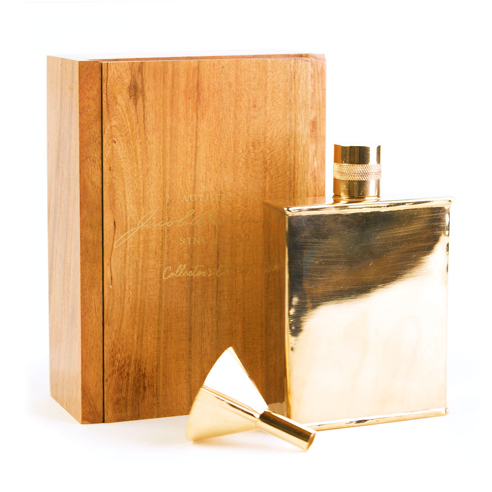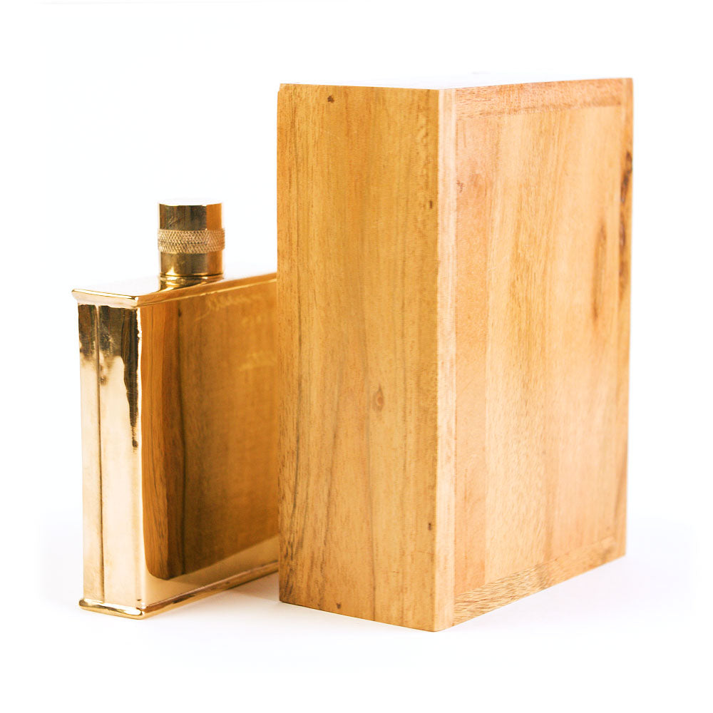 Plated in genuine 24k gold, this heirloom flask radiates presence with its crisp, architectural lines. Gear Patrol crowned the original “the best heirloom-quality flask,” and this gilded edition goes even further for those who move through the world with unmistakable authority. Whether it’s morning coffee or an evening pour of whiskey, this ultra-luxe flask carries up to 7 fluid ounces with total ease. Beneath its brilliant gold exterior lies 22-gauge solid copper, polished to our signature mirror-like SuperPolish™ finish, and completed with a hand-applied, lead-free tin interior using a proprietary, old-world process exclusive to Jacob Bromwell®. A true legacy set, it ships to you with a collector's edition wood box and matching gold-plated funnel, and is destined to be handed down and talked about for generations.