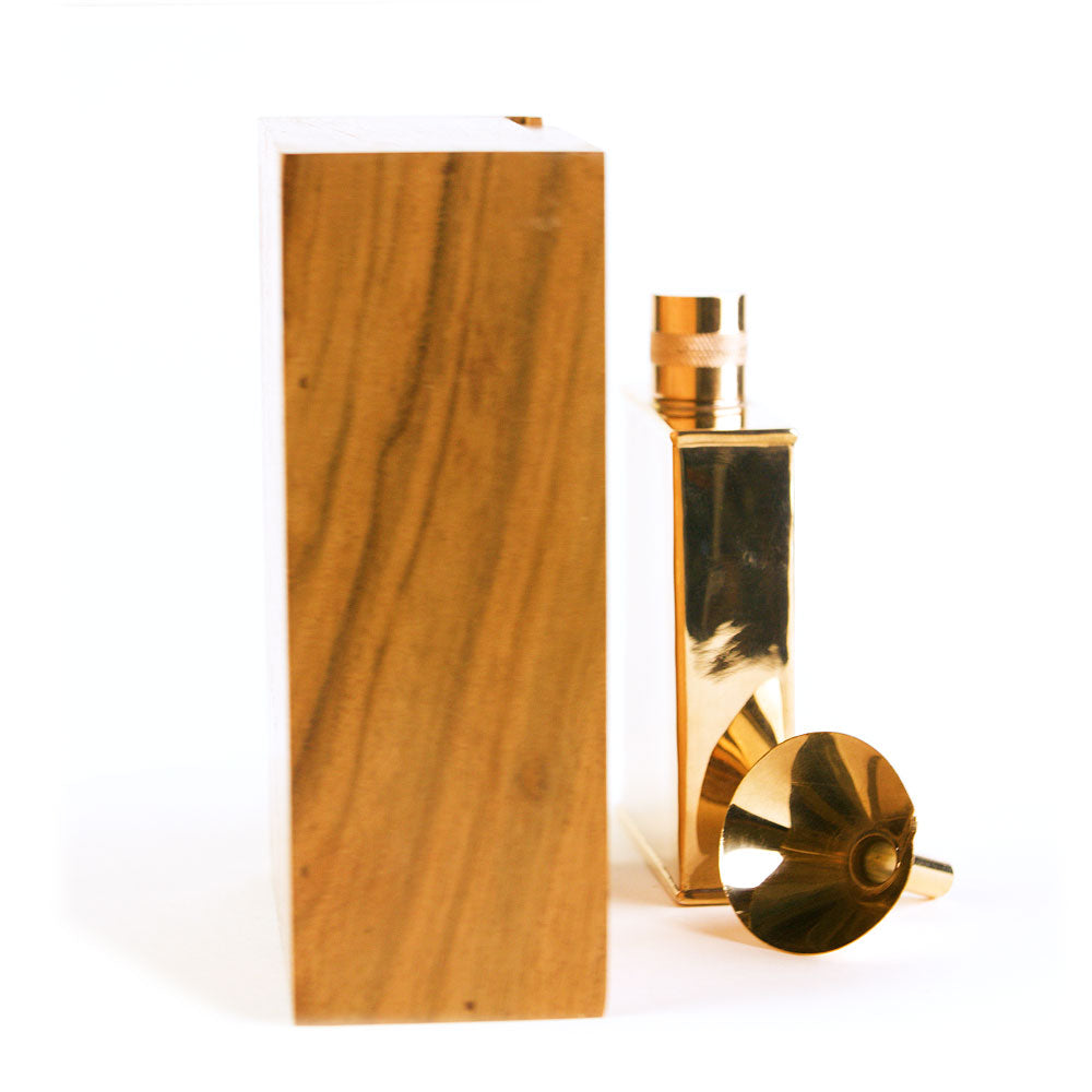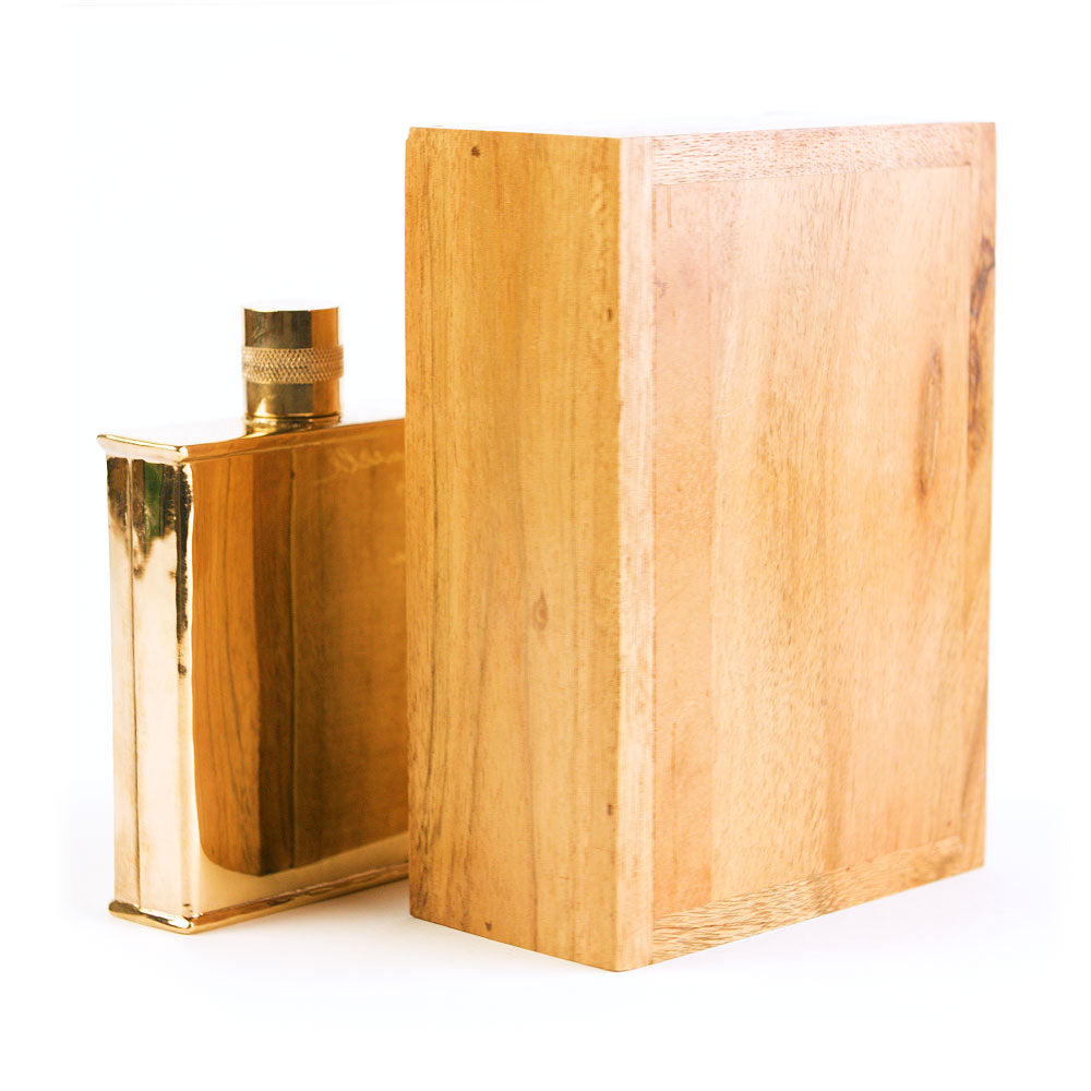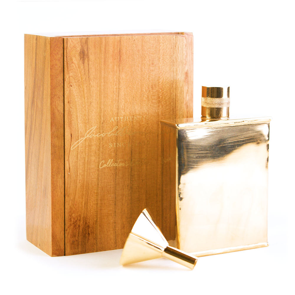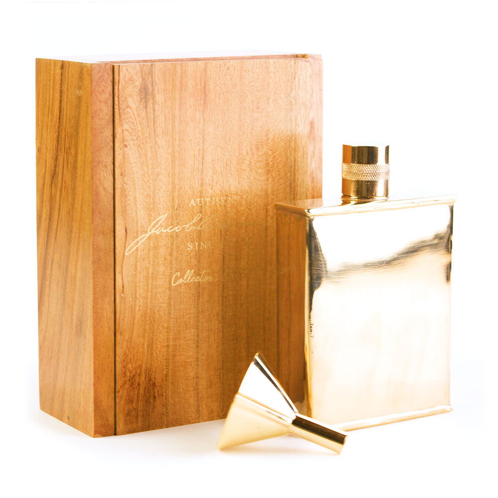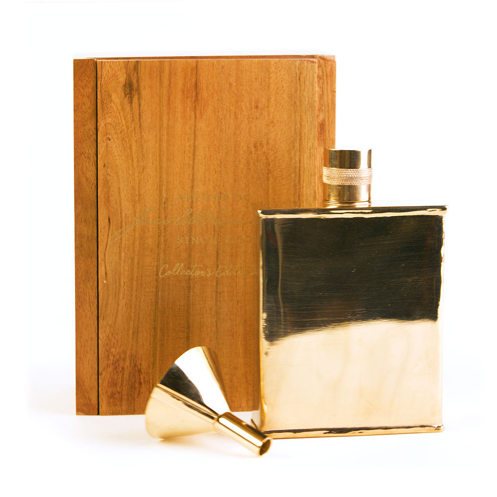 Plated in genuine 24k gold, this heirloom flask radiates presence with its crisp, architectural lines. Gear Patrol crowned the original “the best heirloom-quality flask,” and this gilded edition goes even further for those who move through the world with unmistakable authority. Whether it’s morning coffee or an evening pour of whiskey, this ultra-luxe flask carries up to 7 fluid ounces with total ease. Beneath its brilliant gold exterior lies 22-gauge solid copper, polished to our signature mirror-like SuperPolish™ finish, and completed with a hand-applied, lead-free tin interior using a proprietary, old-world process exclusive to Jacob Bromwell®. A true legacy set, it ships to you with a collector's edition wood box and matching gold-plated funnel, and is destined to be handed down and talked about for generations.