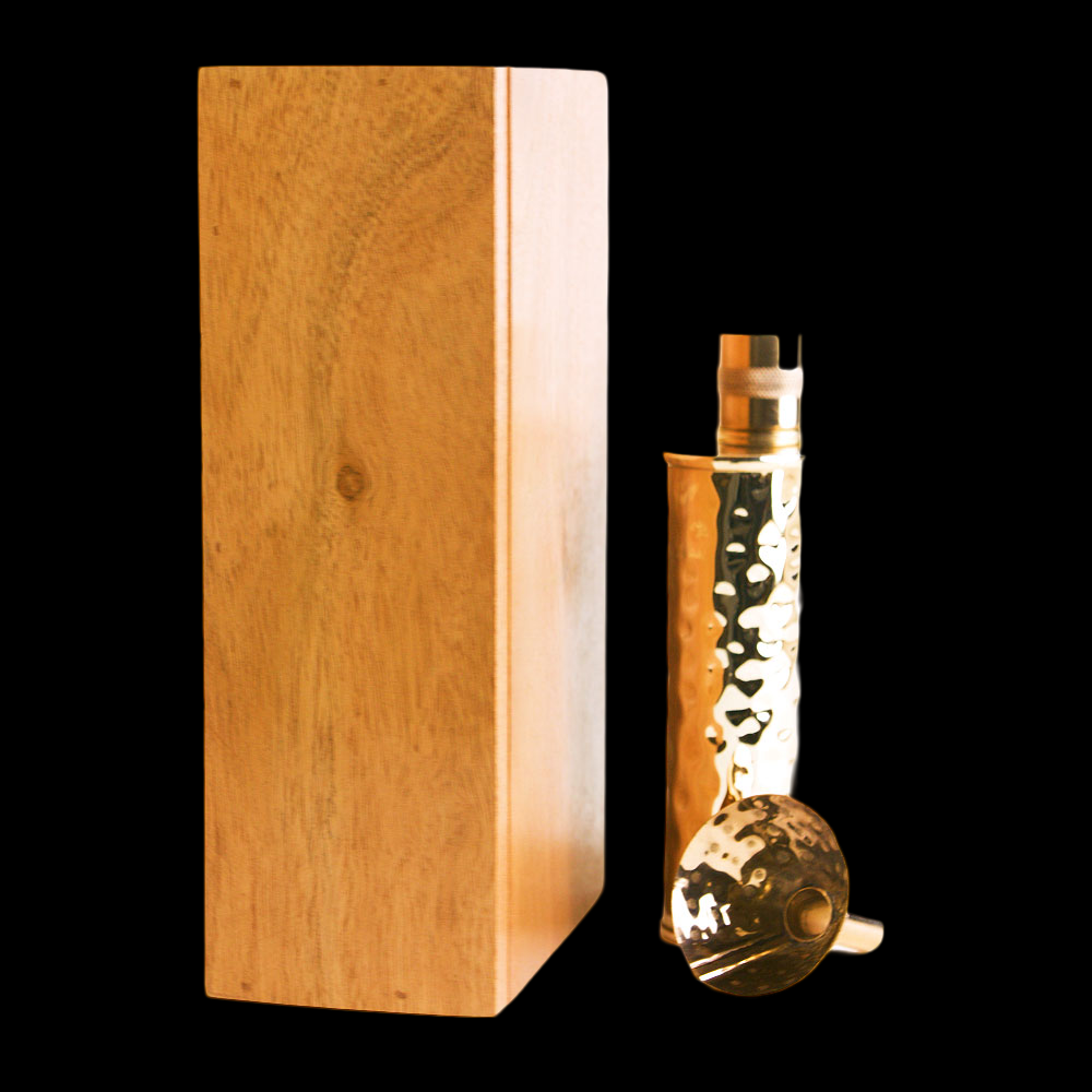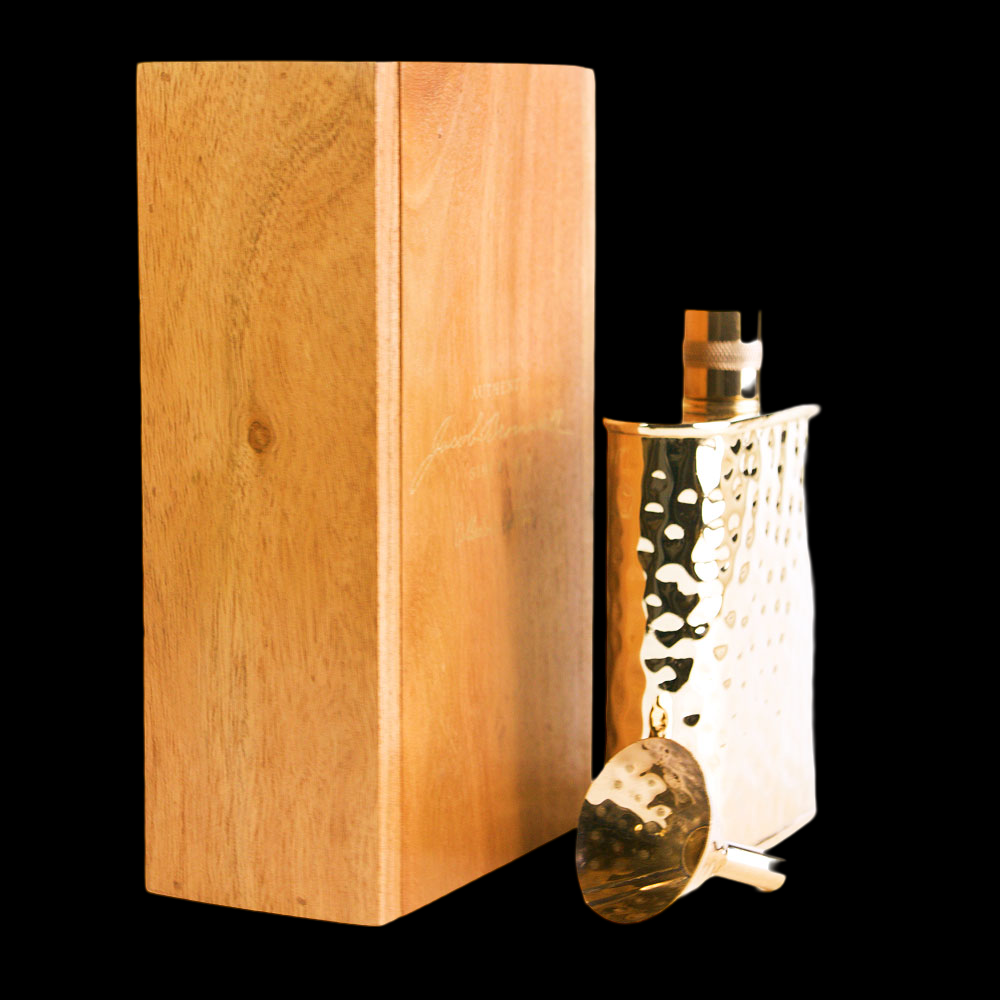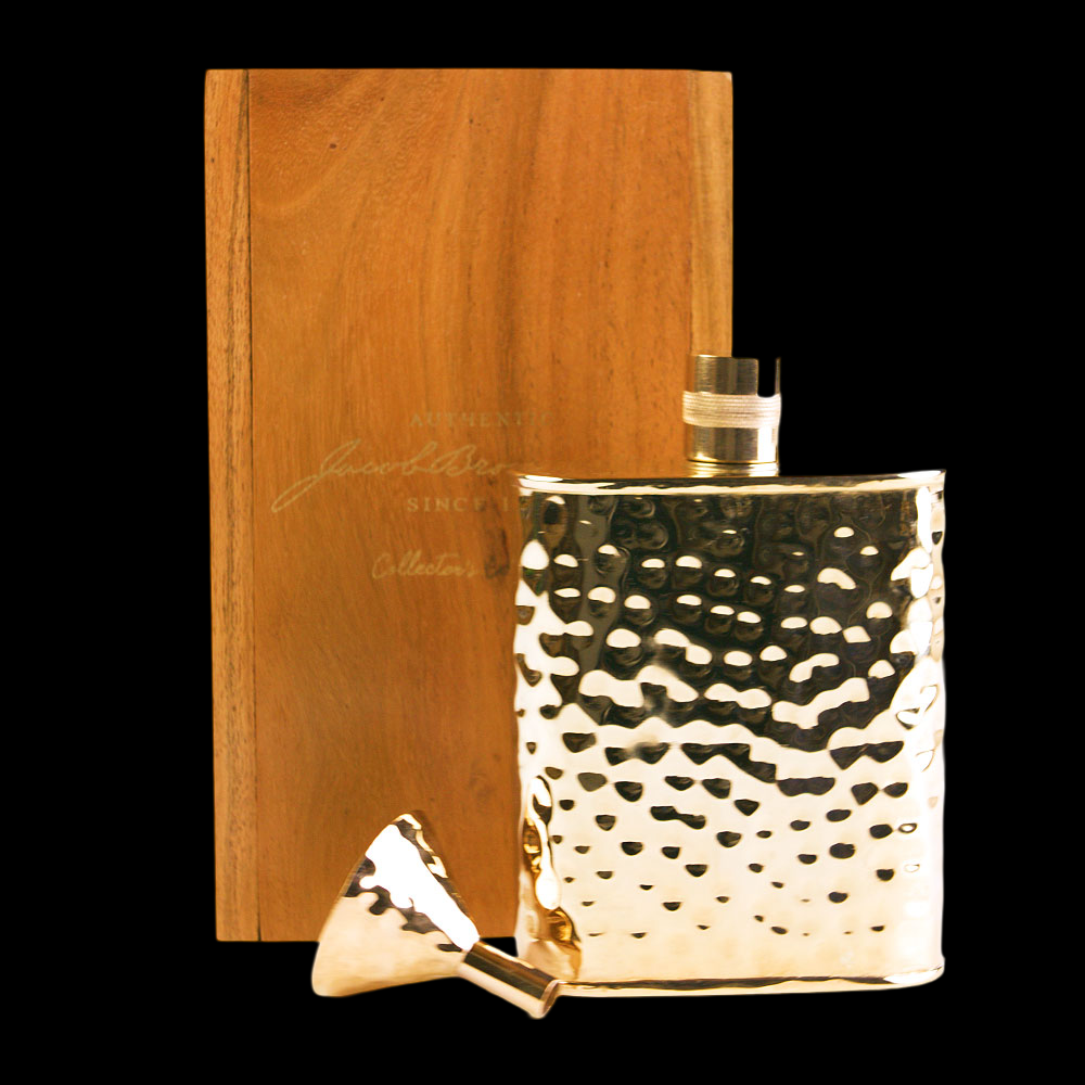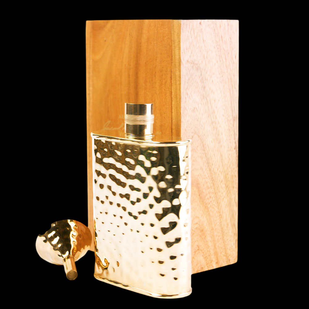 Praised as makers of "the manliest, most gorgeous flasks in the game" by Esquire, The 24k Gold Freedom reminds its owners that it's not just what you drink, but how you drink it. An object d'art, it's the ideal flask for any user or collector and consistently checks every box: it's beautiful, sturdy, portable, and carries the perfect volume—without seeming overly large. Its body is made of 22 gauge solid copper—finished off with our ultra-reflective 24k gold finish—while molten, lead-free tin is applied to the interior using a lost process that's trade-secret to our company. The glittering 24k gold-plated flask and funnel arrive inside a Collector's Edition acacia wood presentation box, which is lacquered and branded in brilliant gold foil. Built by hand since 1819—and owned by the affluent from Newport Beach to The Hamptons—The 24k Gold Freedom is a spectacular status symbol showcasing the pinnacle in luxury, design, and build quality.