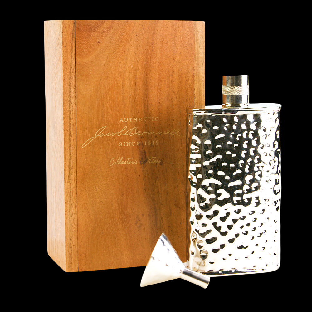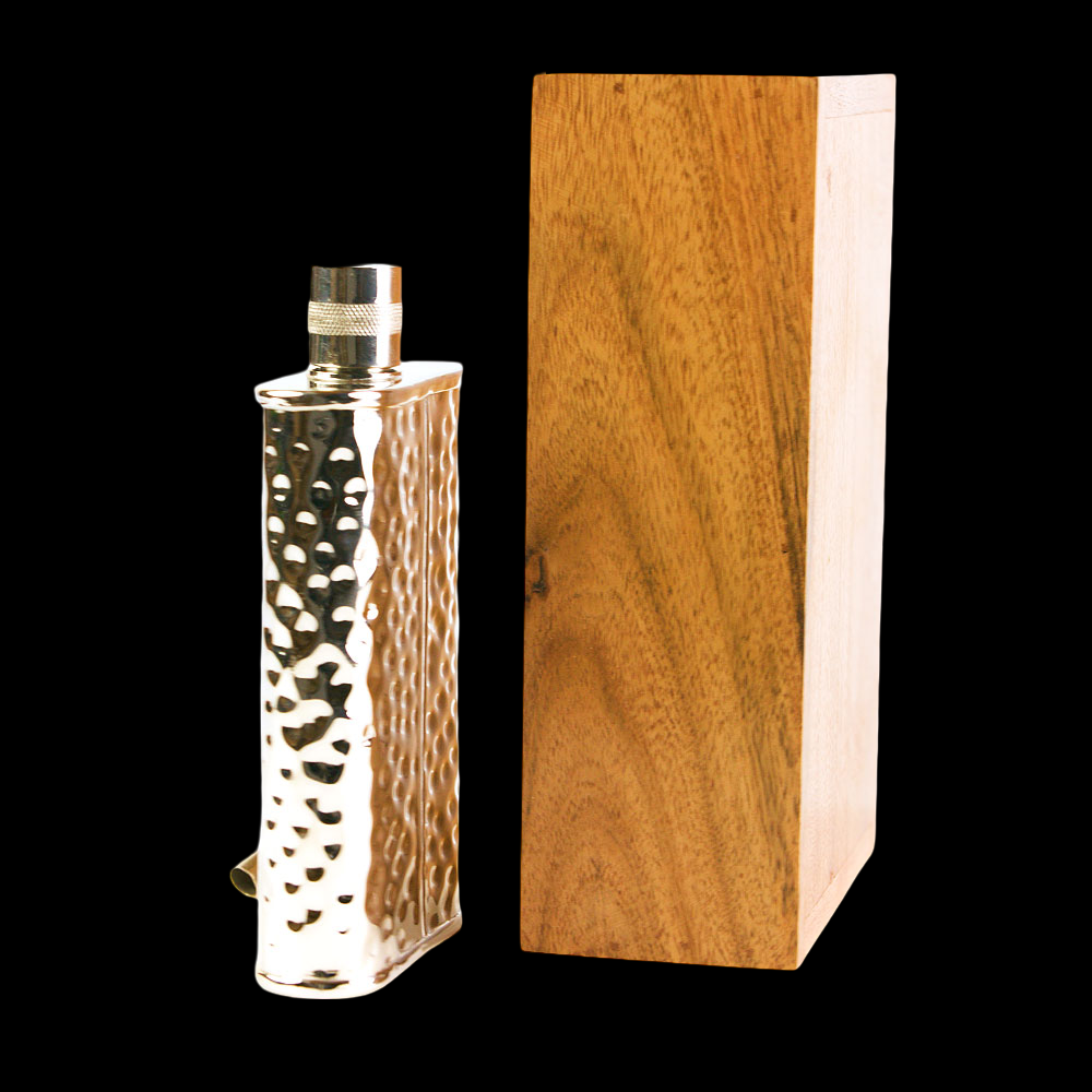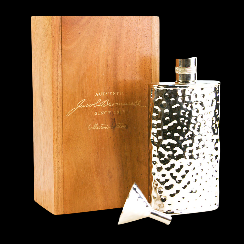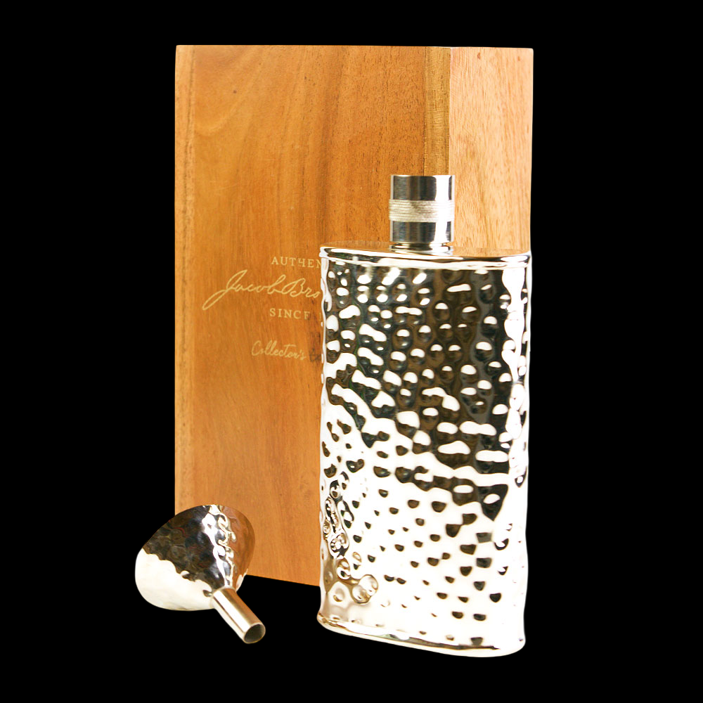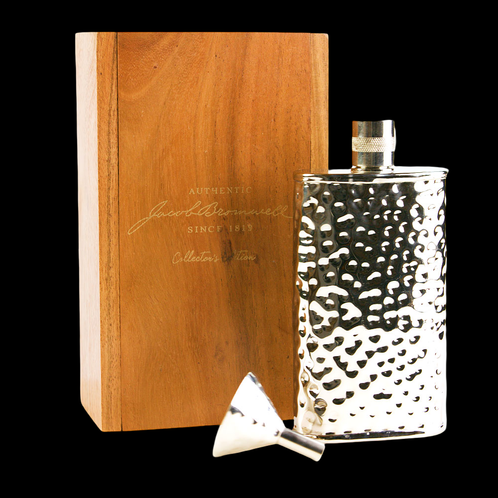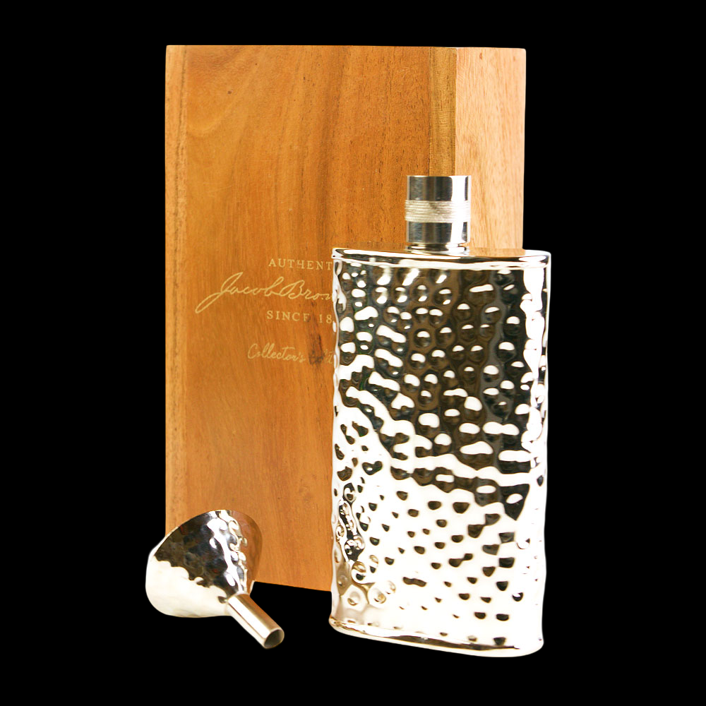 Praised as being "worthy of passing down for generations" by Bloomberg, The Platinum Roosevelt features a kidney-shaped design that is both slim and compact—clocking in at just 3 inches wide and 6 inches tall. This makes The Platinum Roosevelt just the right size, fitting very nicely into a jacket pocket without creating a noticeable bulge. A legendary status symbol, The Platinum Roosevelt is perfectly hammered by skilled Jacob Bromwell® artisans, resulting in over 5 labor hours per piece. Its body is made of 22 gauge solid copper—finished off with our jewelry-grade platinum finish—while molten, lead-free tin is applied to the interior using a lost process that's trade-secret to our company. Rarely do you get to hold a fine product in your hands that has as much history as The Platinum Roosevelt, plus the quality to back it up. Like a fine watch, this is one of the best luxury flasks you can invest in for your life.