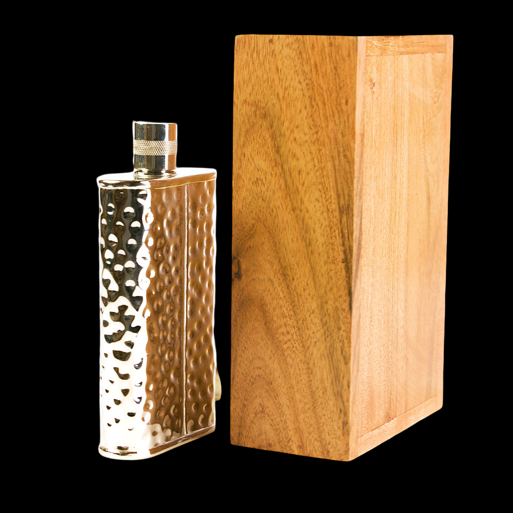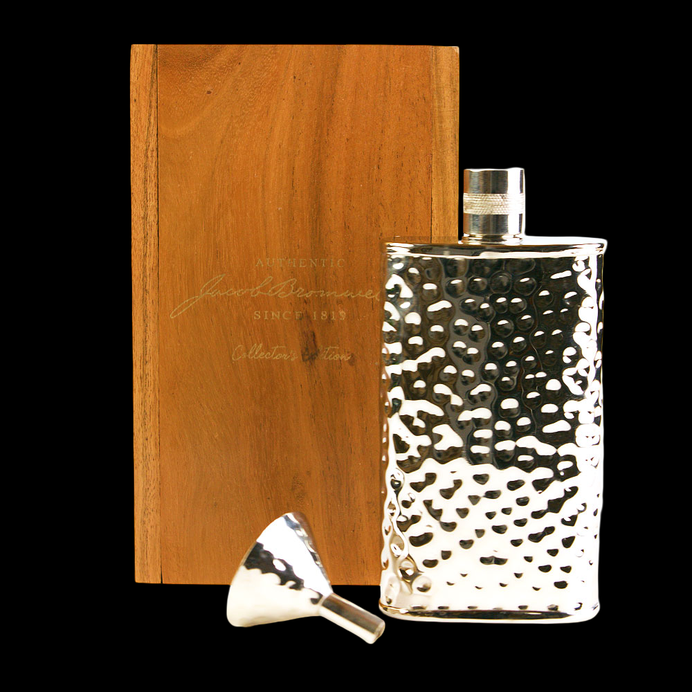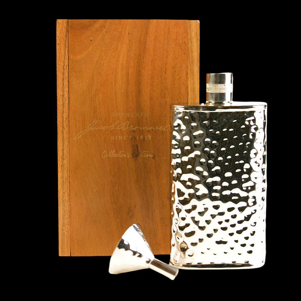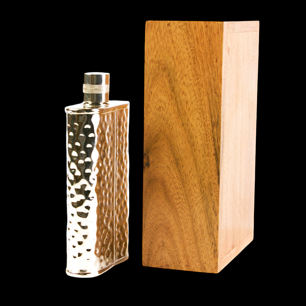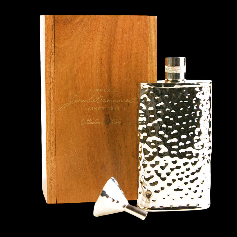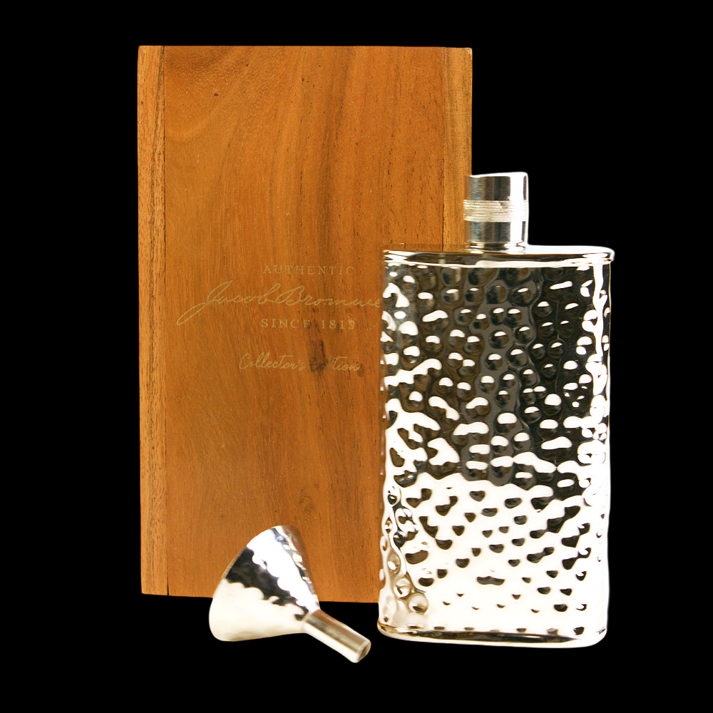 Praised as being "worthy of passing down for generations" by Bloomberg, The Platinum Roosevelt features a kidney-shaped design that is both slim and compact—clocking in at just 3 inches wide and 6 inches tall. This makes The Platinum Roosevelt just the right size, fitting very nicely into a jacket pocket without creating a noticeable bulge. A legendary status symbol, The Platinum Roosevelt is perfectly hammered by skilled Jacob Bromwell® artisans, resulting in over 5 labor hours per piece. Its body is made of 22 gauge solid copper—finished off with our jewelry-grade platinum finish—while molten, lead-free tin is applied to the interior using a lost process that's trade-secret to our company. Rarely do you get to hold a fine product in your hands that has as much history as The Platinum Roosevelt, plus the quality to back it up. Like a fine watch, this is one of the best luxury flasks you can invest in for your life.