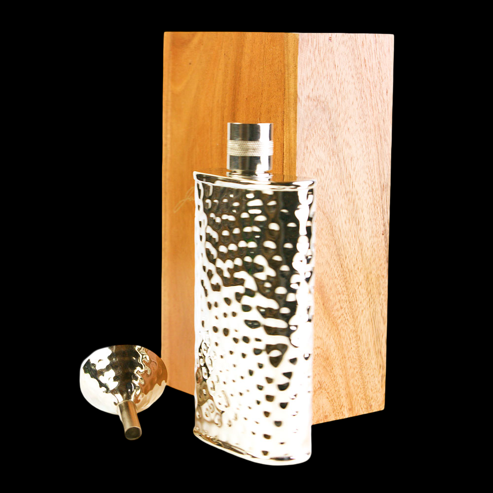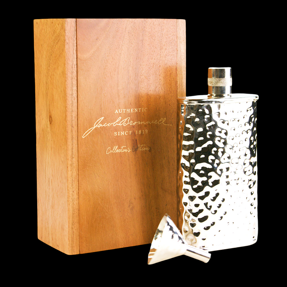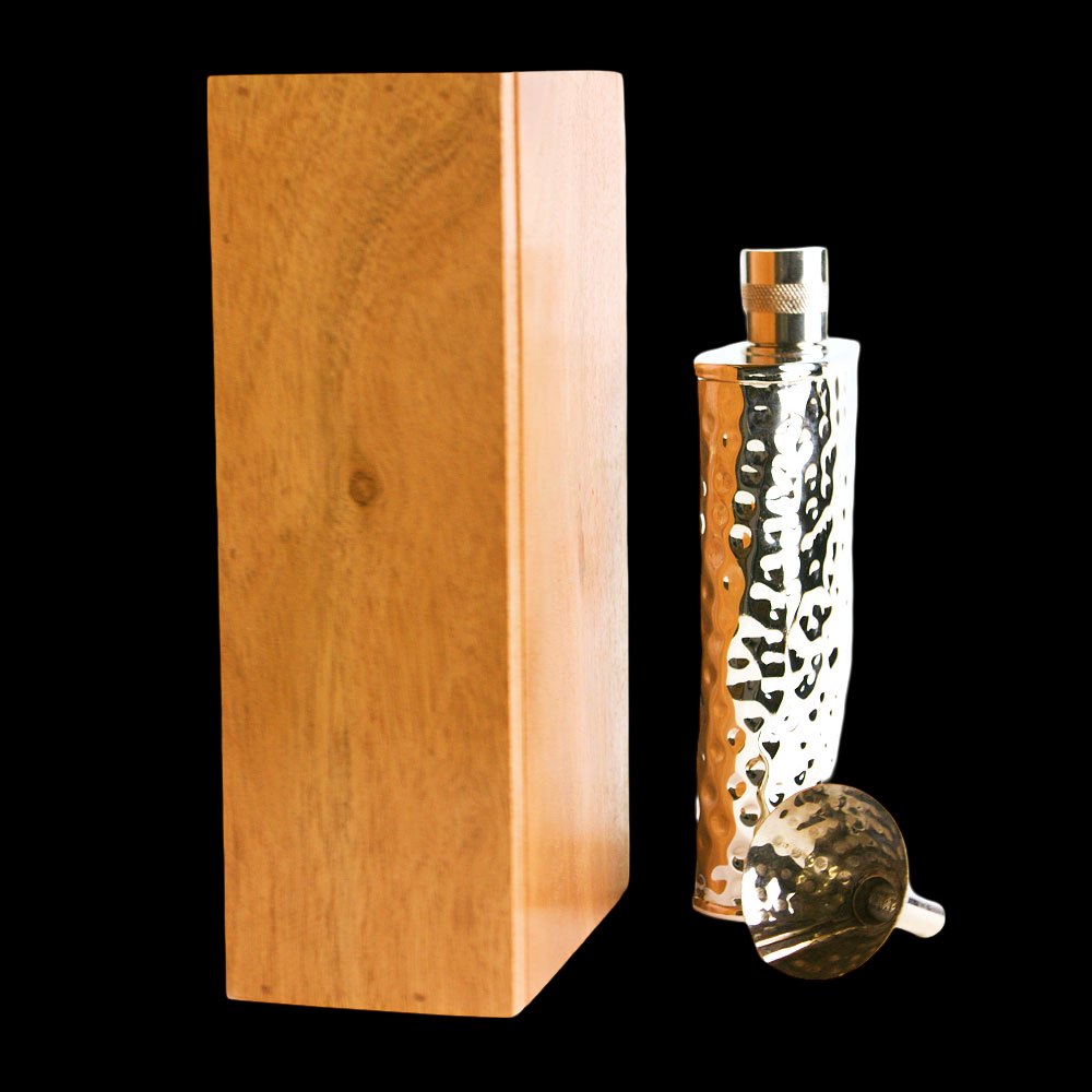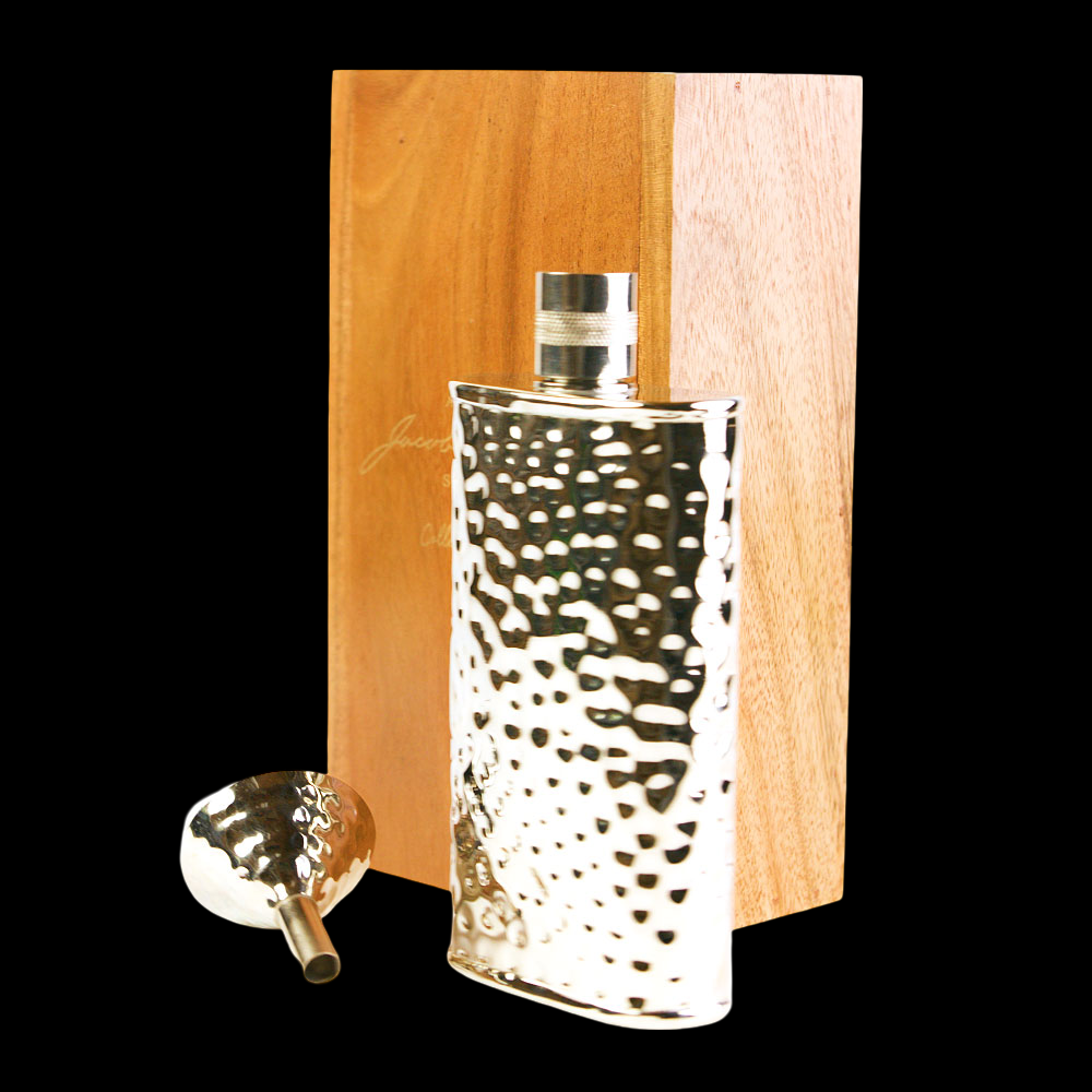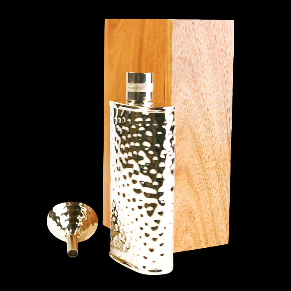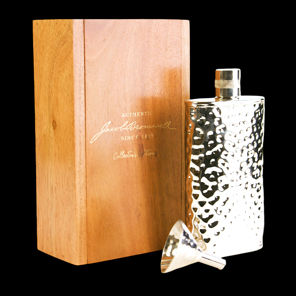 Praised as being "worthy of passing down for generations" by Bloomberg, The Platinum Roosevelt features a kidney-shaped design that is both slim and compact—clocking in at just 3 inches wide and 6 inches tall. This makes The Platinum Roosevelt just the right size, fitting very nicely into a jacket pocket without creating a noticeable bulge. A legendary status symbol, The Platinum Roosevelt is perfectly hammered by skilled Jacob Bromwell® artisans, resulting in over 5 labor hours per piece. Its body is made of 22 gauge solid copper—finished off with our jewelry-grade platinum finish—while molten, lead-free tin is applied to the interior using a lost process that's trade-secret to our company. Rarely do you get to hold a fine product in your hands that has as much history as The Platinum Roosevelt, plus the quality to back it up. Like a fine watch, this is one of the best luxury flasks you can invest in for your life.