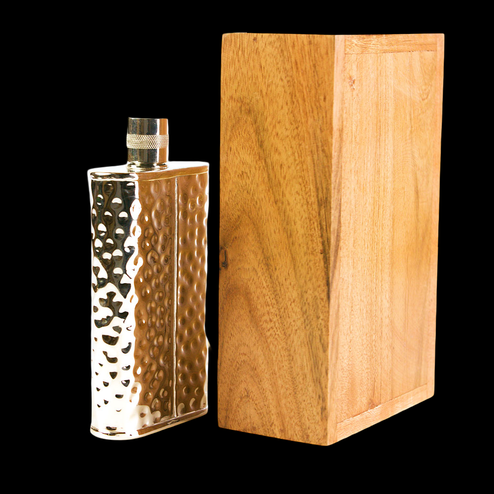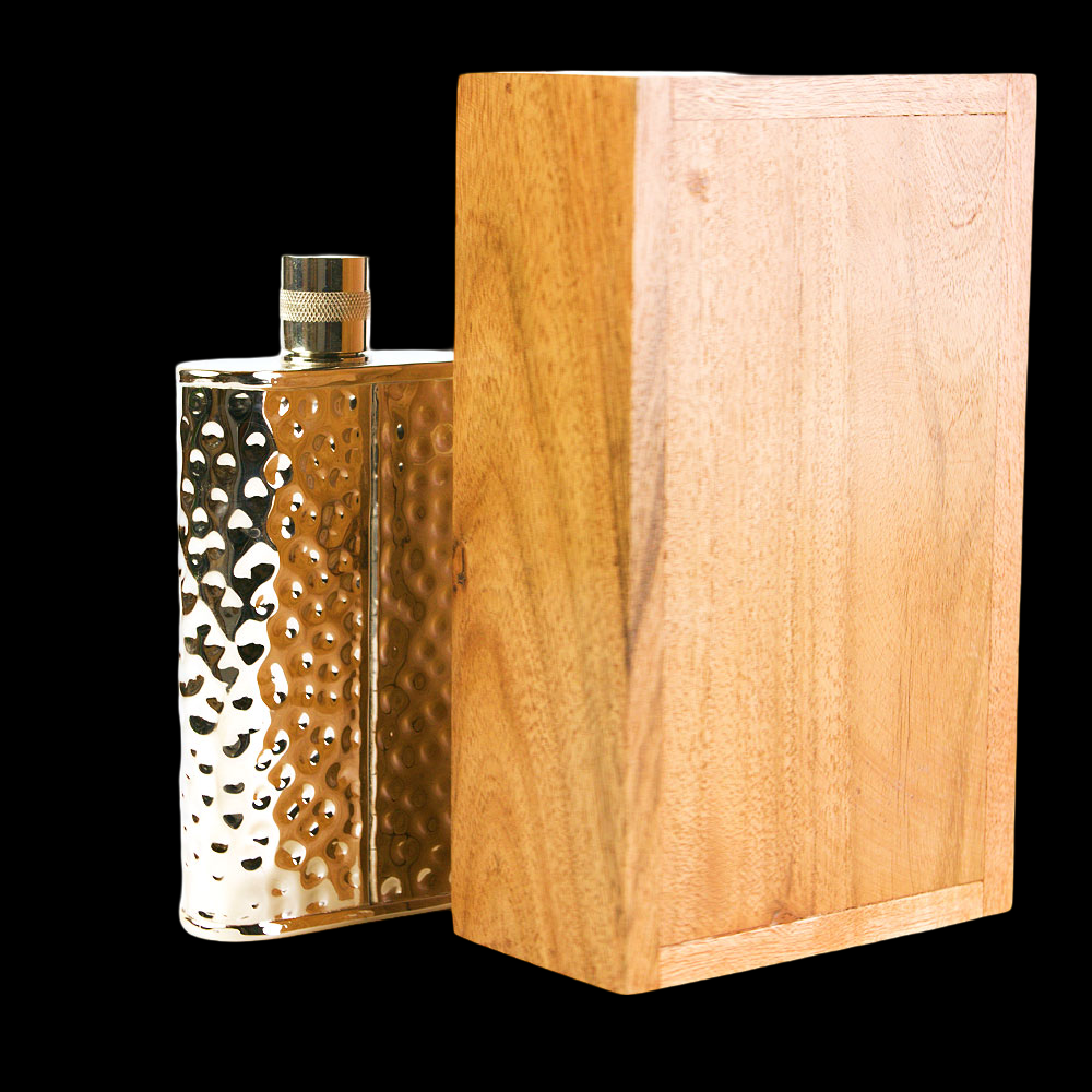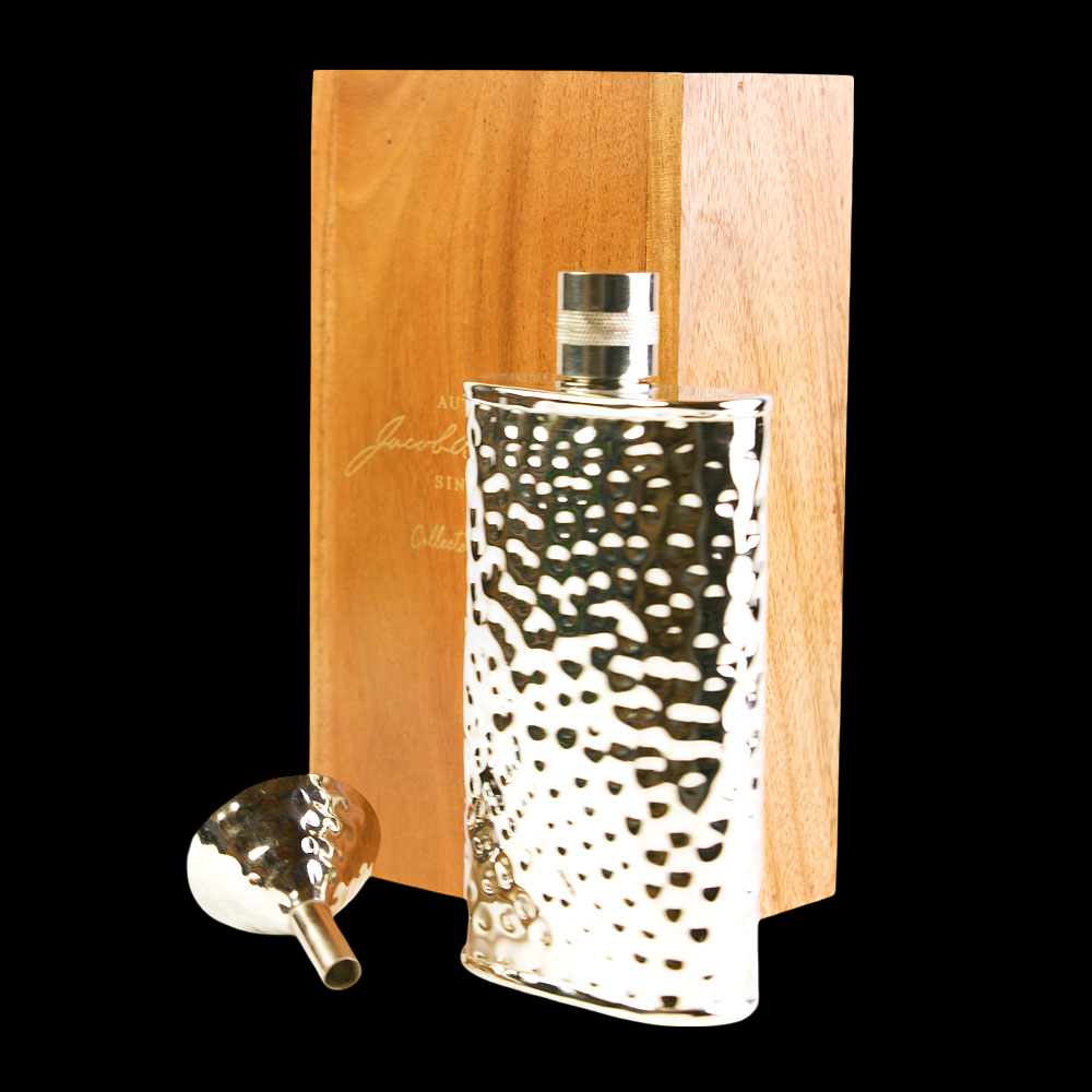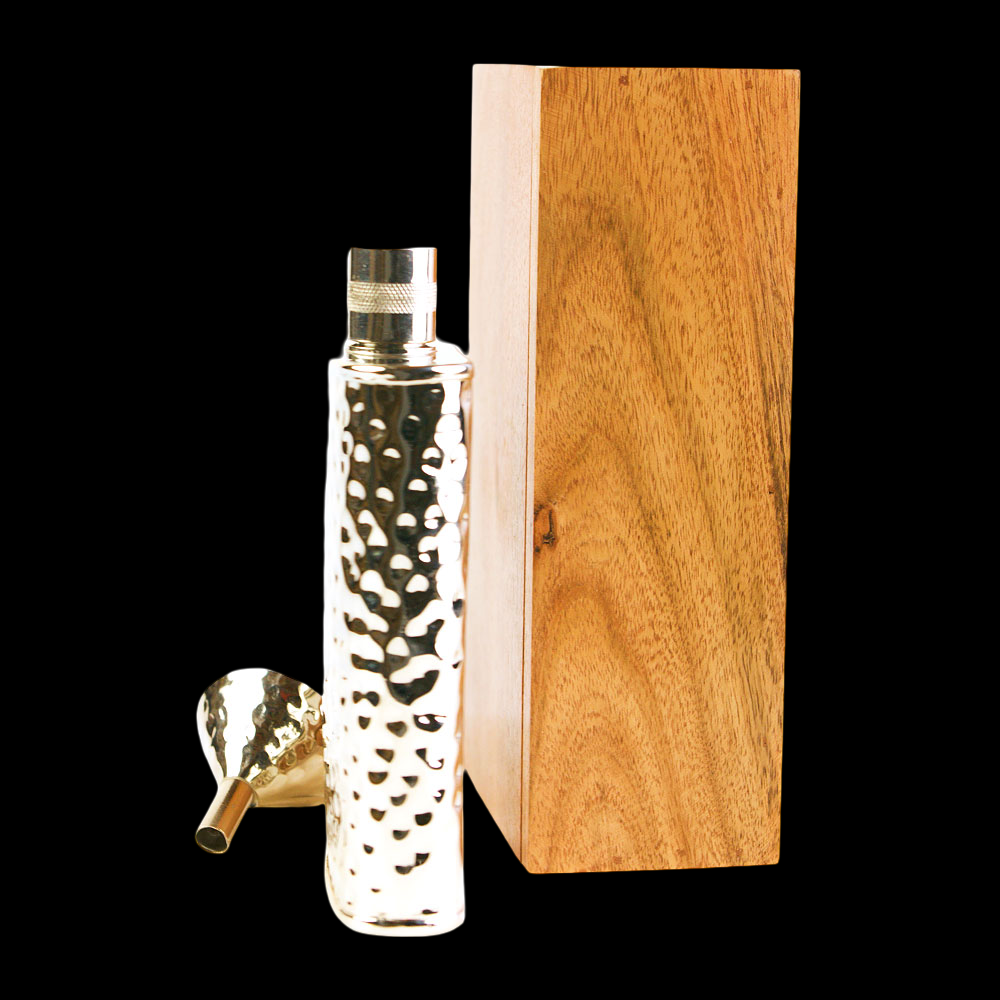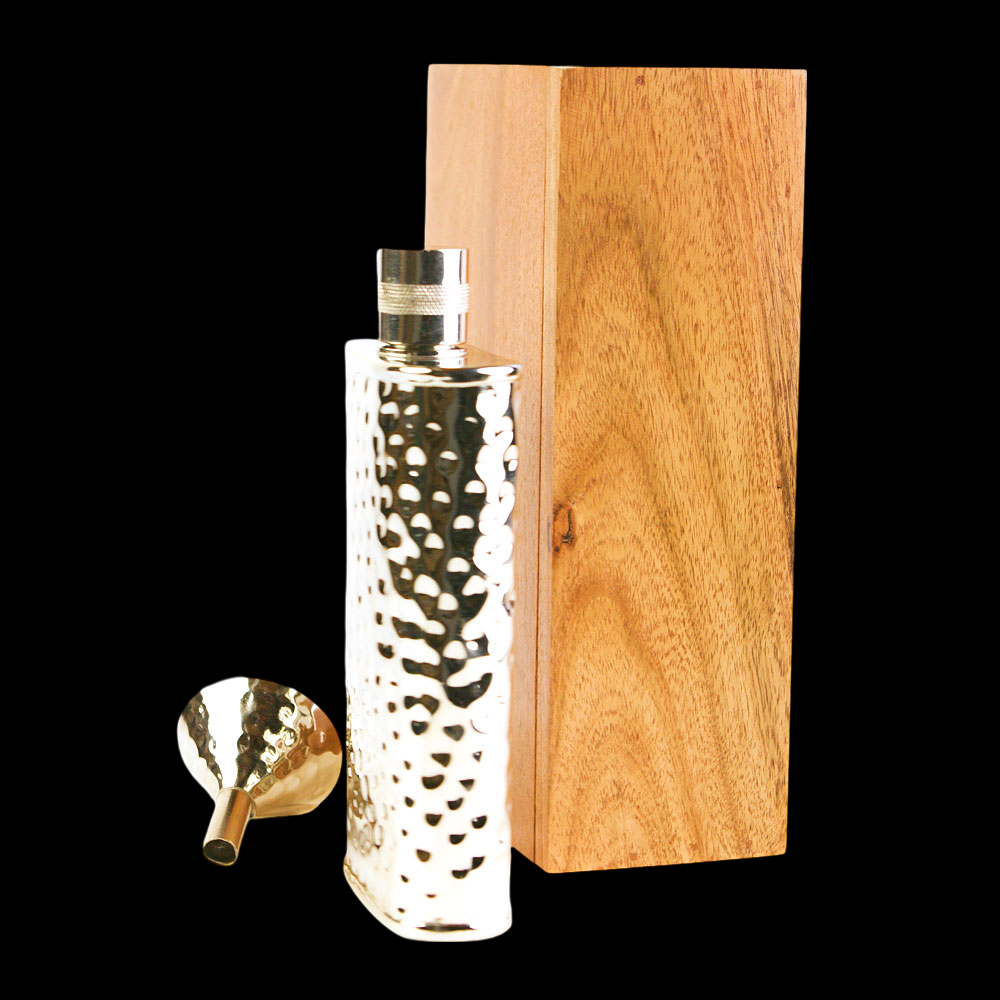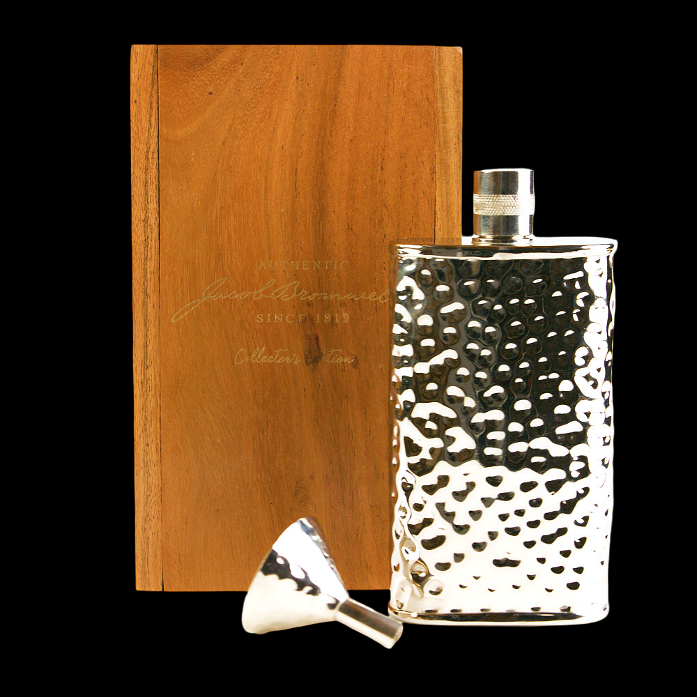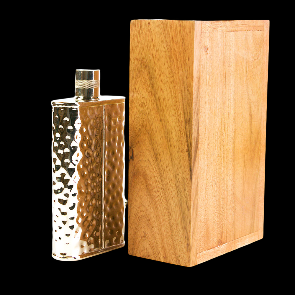 Praised as being "worthy of passing down for generations" by Bloomberg, The Platinum Roosevelt features a kidney-shaped design that is both slim and compact—clocking in at just 3 inches wide and 6 inches tall. This makes The Platinum Roosevelt just the right size, fitting very nicely into a jacket pocket without creating a noticeable bulge. A legendary status symbol, The Platinum Roosevelt is perfectly hammered by skilled Jacob Bromwell® artisans, resulting in over 5 labor hours per piece. Its body is made of 22 gauge solid copper—finished off with our jewelry-grade platinum finish—while molten, lead-free tin is applied to the interior using a lost process that's trade-secret to our company. Rarely do you get to hold a fine product in your hands that has as much history as The Platinum Roosevelt, plus the quality to back it up. Like a fine watch, this is one of the best luxury flasks you can invest in for your life.