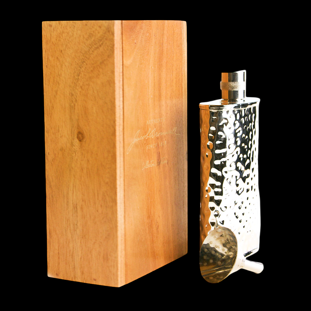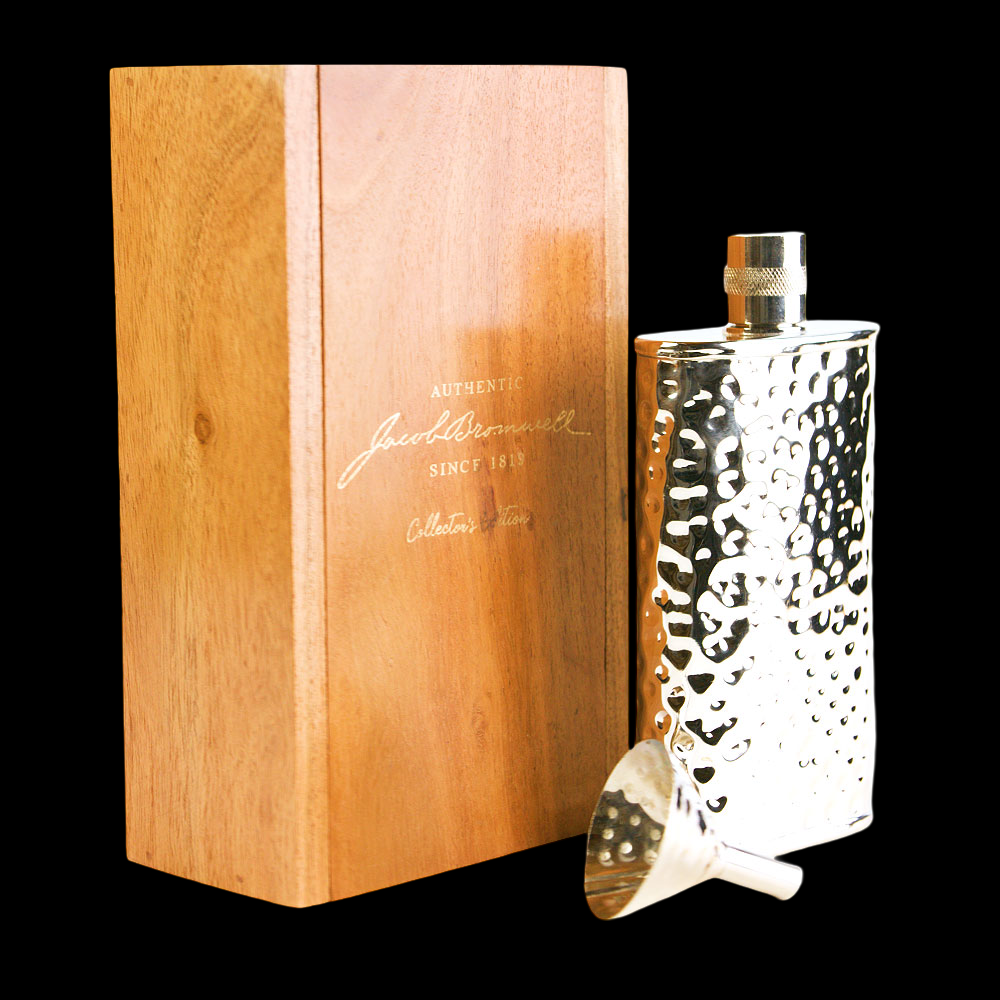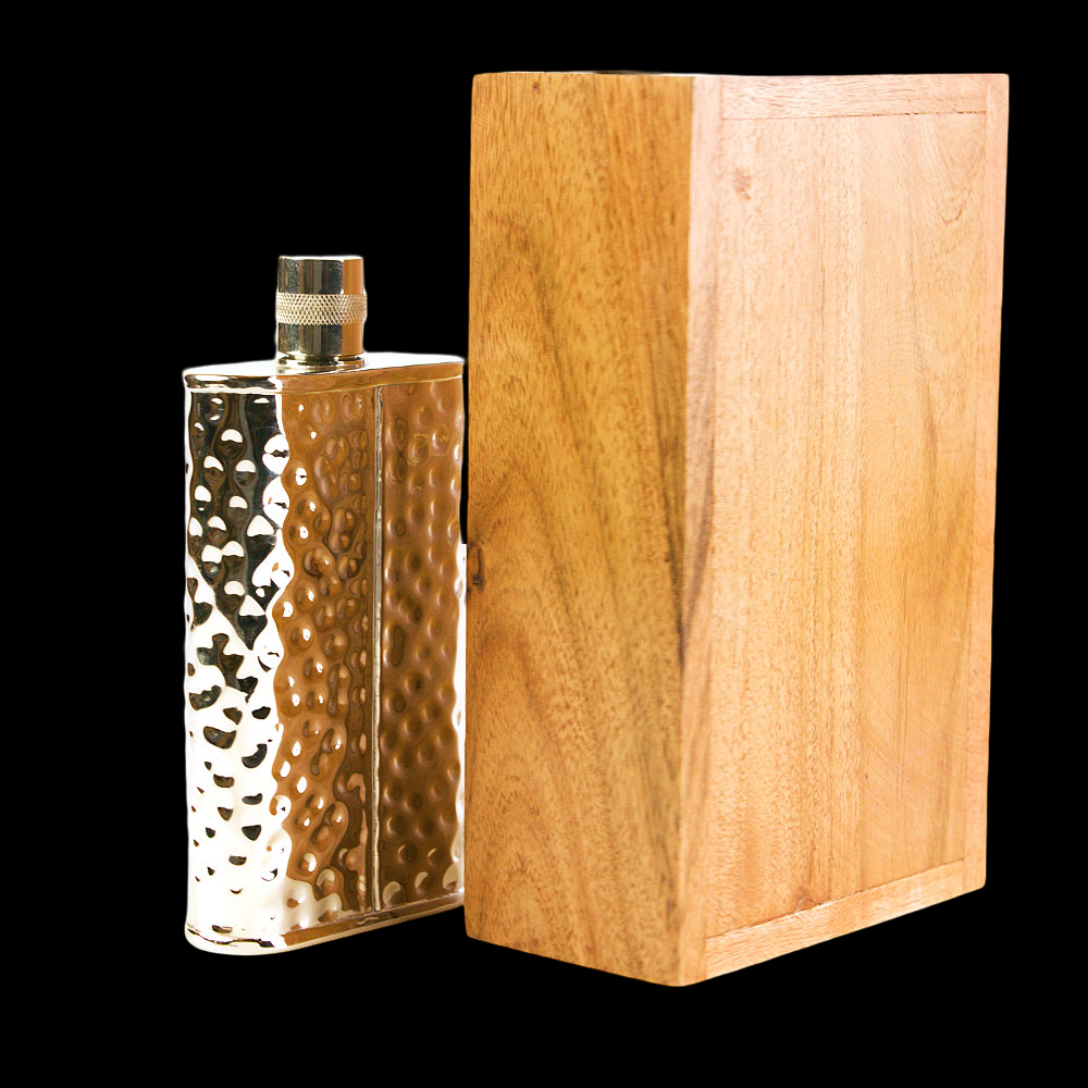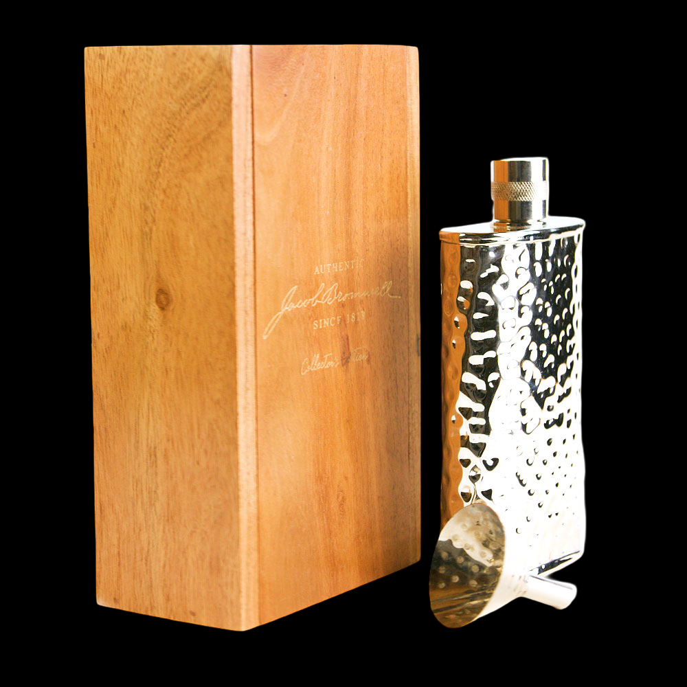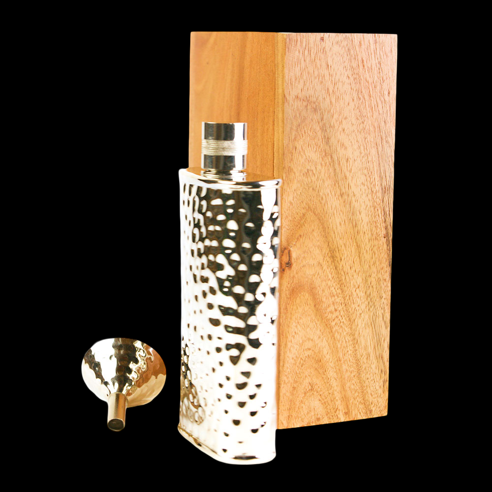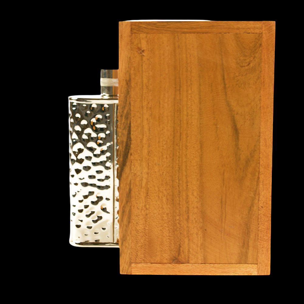 Praised as being "worthy of passing down for generations" by Bloomberg, The Platinum Roosevelt features a kidney-shaped design that is both slim and compact—clocking in at just 3 inches wide and 6 inches tall. This makes The Platinum Roosevelt just the right size, fitting very nicely into a jacket pocket without creating a noticeable bulge. A legendary status symbol, The Platinum Roosevelt is perfectly hammered by skilled Jacob Bromwell® artisans, resulting in over 5 labor hours per piece. Its body is made of 22 gauge solid copper—finished off with our jewelry-grade platinum finish—while molten, lead-free tin is applied to the interior using a lost process that's trade-secret to our company. Rarely do you get to hold a fine product in your hands that has as much history as The Platinum Roosevelt, plus the quality to back it up. Like a fine watch, this is one of the best luxury flasks you can invest in for your life.