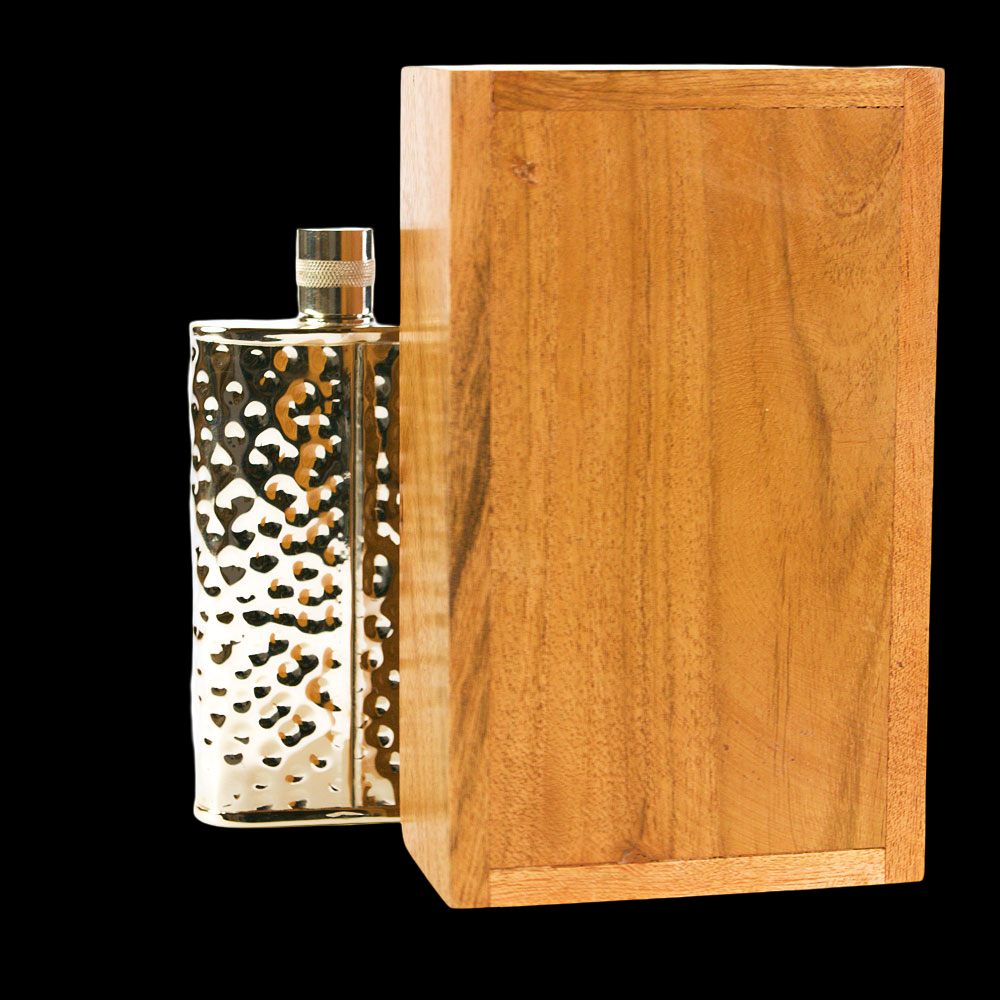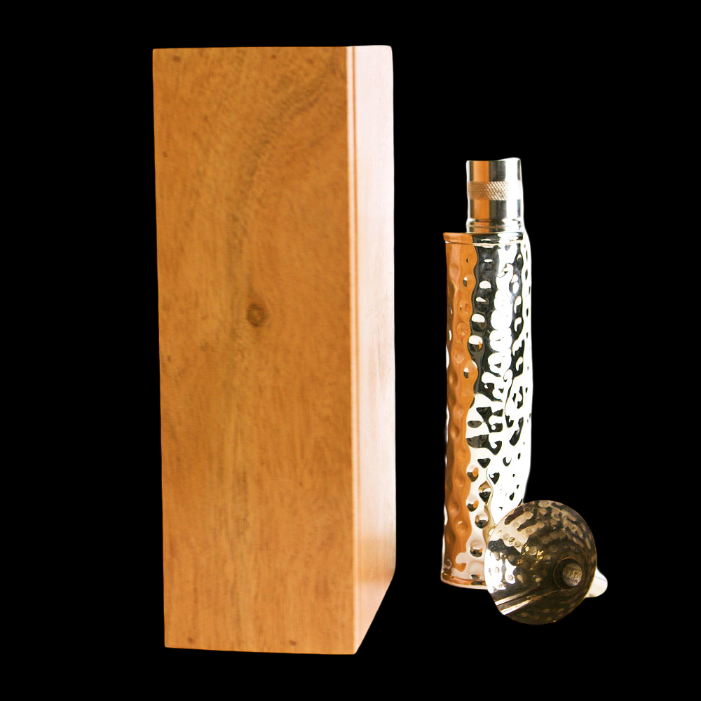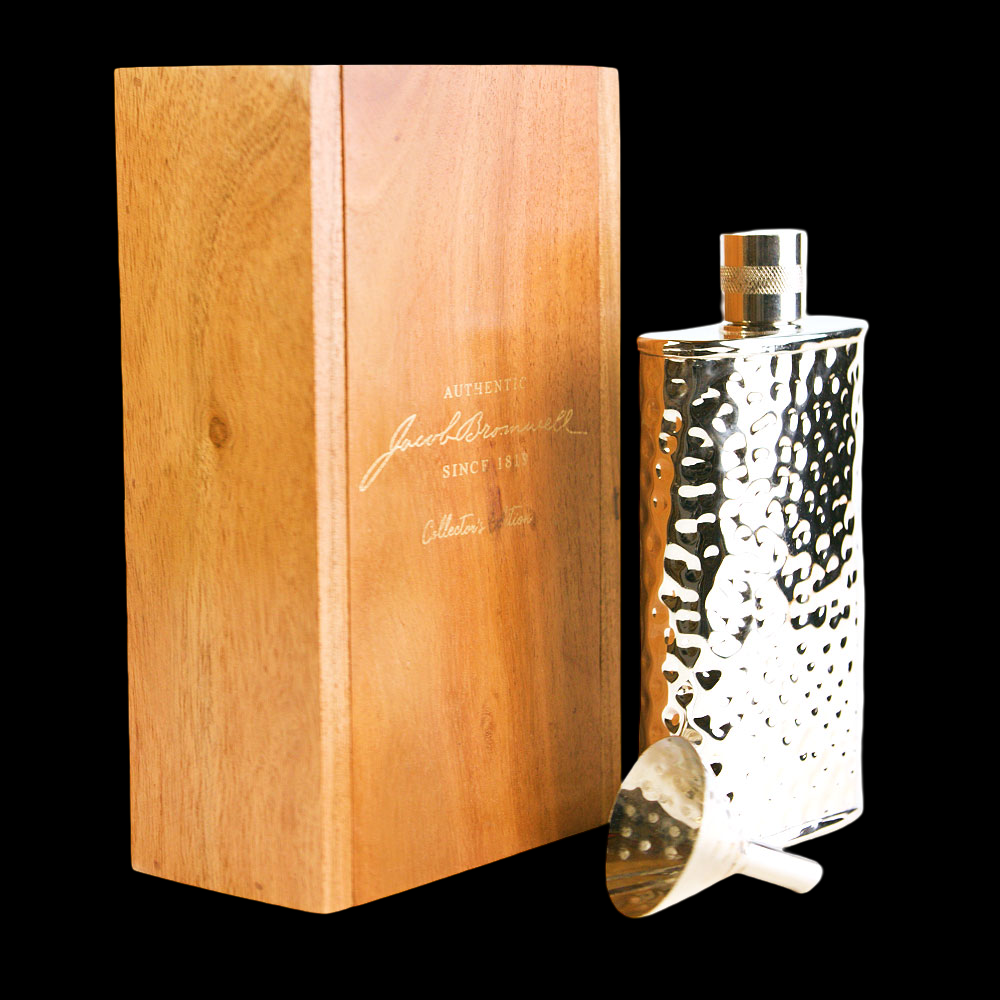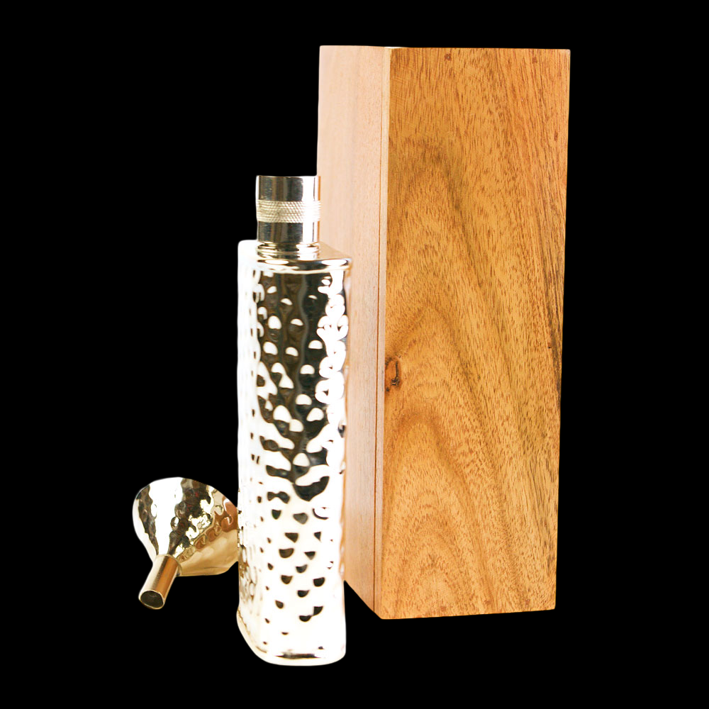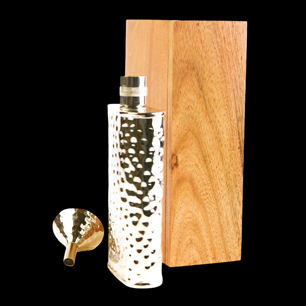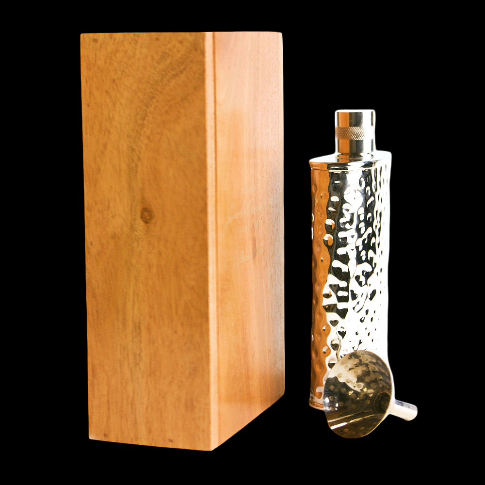 Praised as being "worthy of passing down for generations" by Bloomberg, The Platinum Roosevelt features a kidney-shaped design that is both slim and compact—clocking in at just 3 inches wide and 6 inches tall. This makes The Platinum Roosevelt just the right size, fitting very nicely into a jacket pocket without creating a noticeable bulge. A legendary status symbol, The Platinum Roosevelt is perfectly hammered by skilled Jacob Bromwell® artisans, resulting in over 5 labor hours per piece. Its body is made of 22 gauge solid copper—finished off with our jewelry-grade platinum finish—while molten, lead-free tin is applied to the interior using a lost process that's trade-secret to our company. Rarely do you get to hold a fine product in your hands that has as much history as The Platinum Roosevelt, plus the quality to back it up. Like a fine watch, this is one of the best luxury flasks you can invest in for your life.