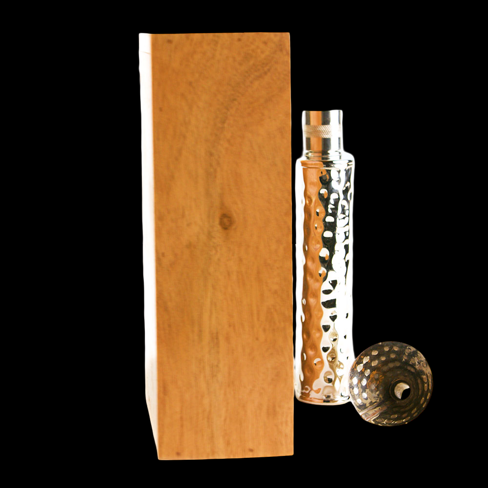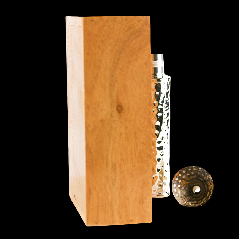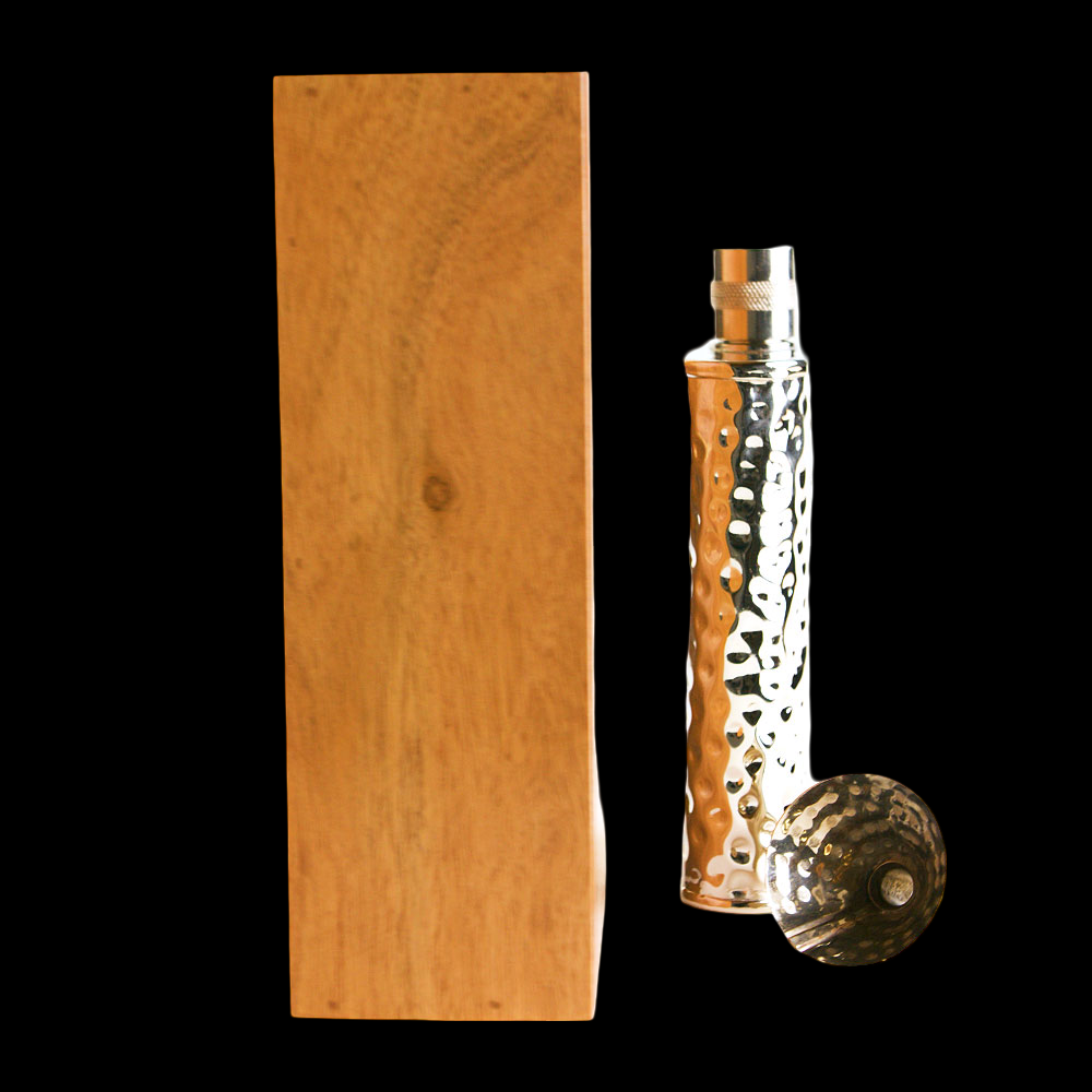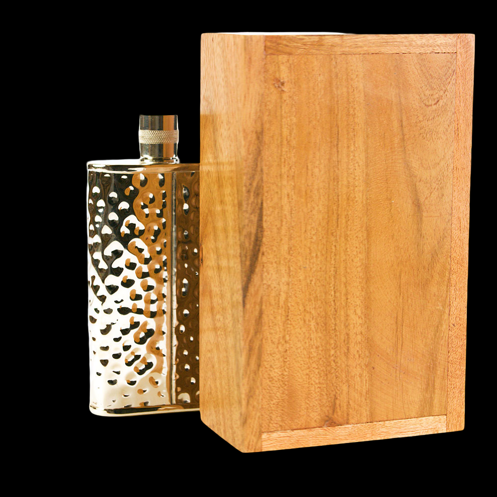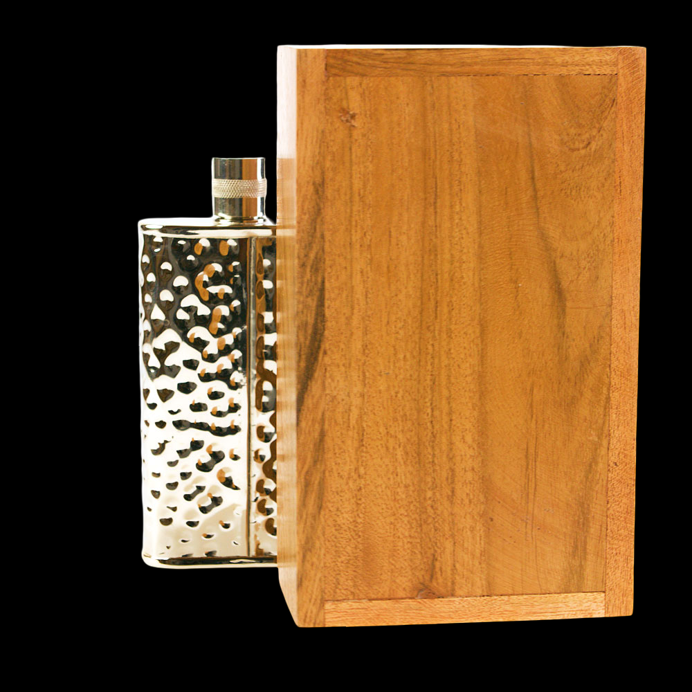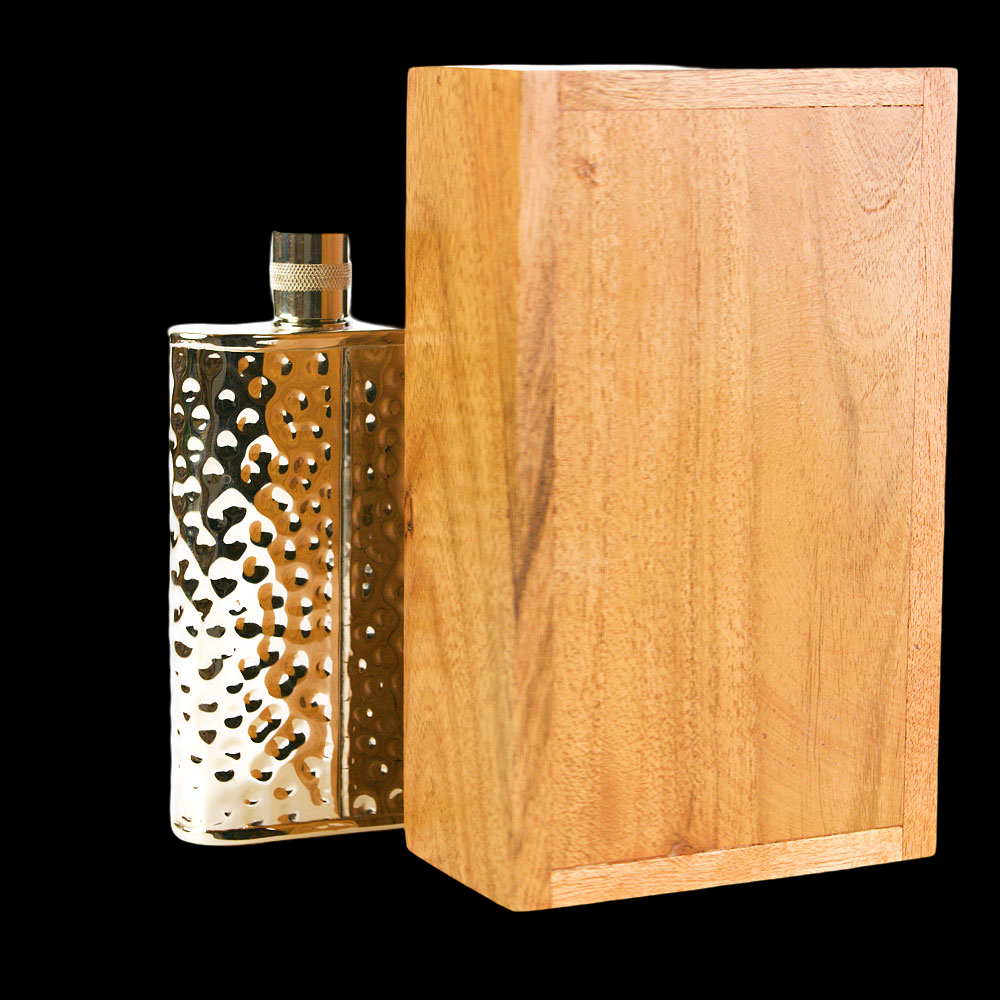 Praised as being "worthy of passing down for generations" by Bloomberg, The Platinum Roosevelt features a kidney-shaped design that is both slim and compact—clocking in at just 3 inches wide and 6 inches tall. This makes The Platinum Roosevelt just the right size, fitting very nicely into a jacket pocket without creating a noticeable bulge. A legendary status symbol, The Platinum Roosevelt is perfectly hammered by skilled Jacob Bromwell® artisans, resulting in over 5 labor hours per piece. Its body is made of 22 gauge solid copper—finished off with our jewelry-grade platinum finish—while molten, lead-free tin is applied to the interior using a lost process that's trade-secret to our company. Rarely do you get to hold a fine product in your hands that has as much history as The Platinum Roosevelt, plus the quality to back it up. Like a fine watch, this is one of the best luxury flasks you can invest in for your life.